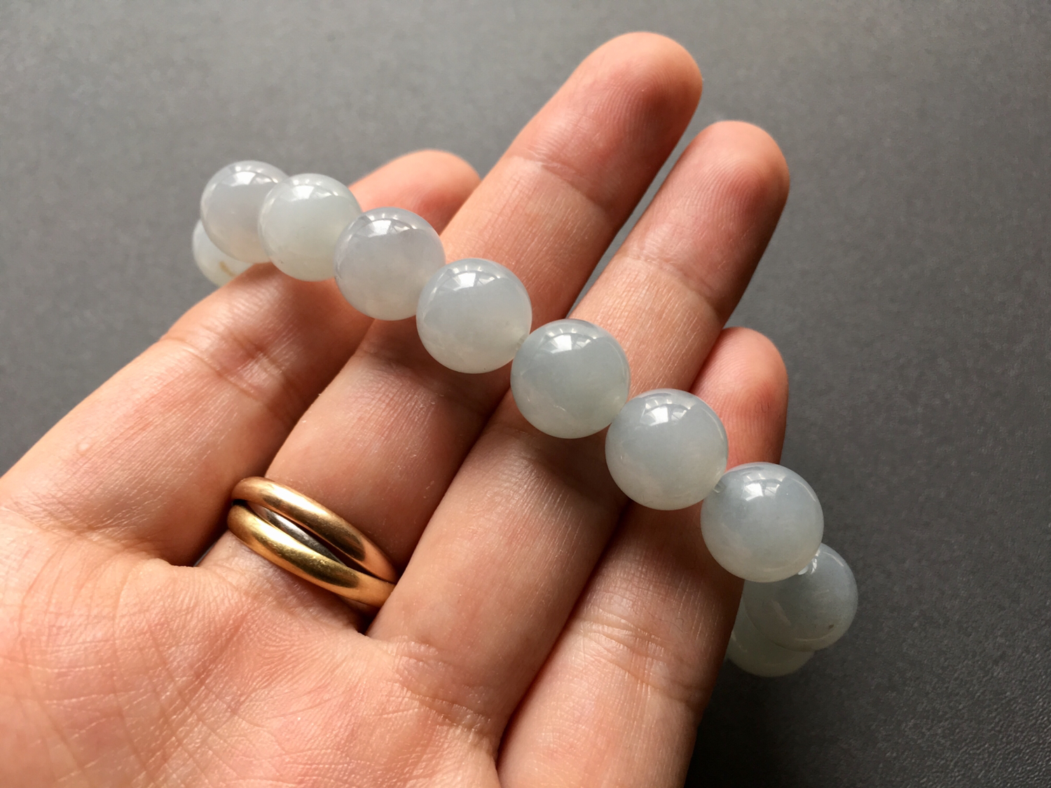 大果冻,糯冰种翡翠珠串,手串,这可不是一般的小珠子,大小超过11mm,上手特别贵气,这样大小的珠子市面上单卖一颗都在200以上,能凑成种水颜色均匀的手串特别难得,无纹无裂,品质很赞,最重要的是价格实惠,只要1xxx,机会难得,别错过