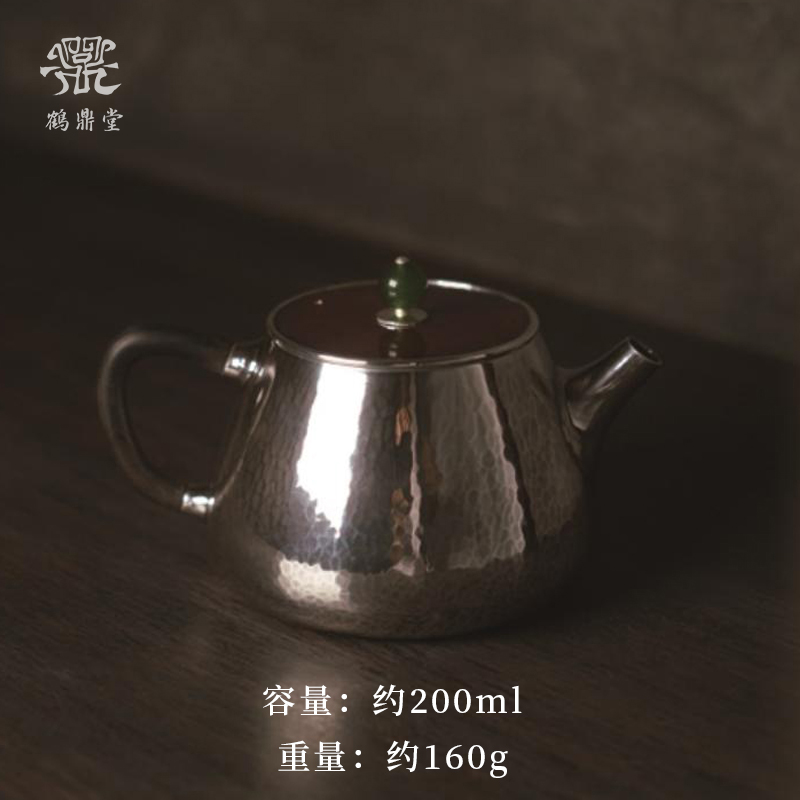 鹤鼎堂银壶闻天系列景山急须槌目纹铜包银盖(银色)(缺货)