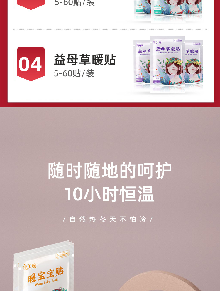 【多款暖贴可混拼 】10片装 康贝妧暖宝贴暖贴发热贴自发热贴暖宝宝艾草益母草
