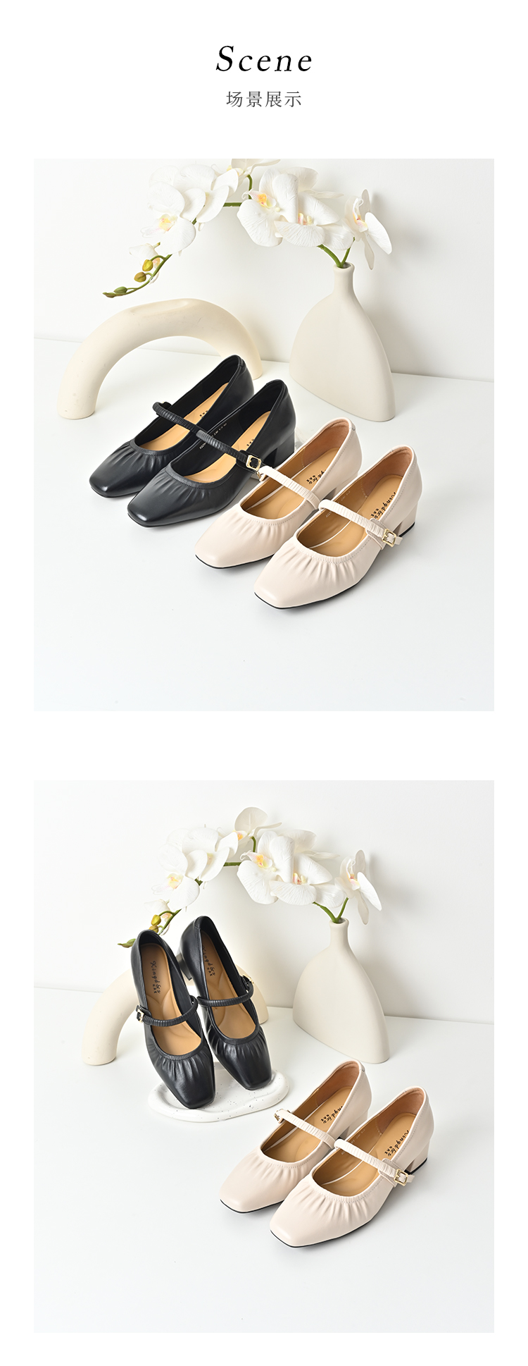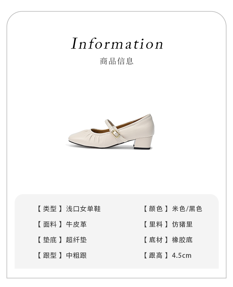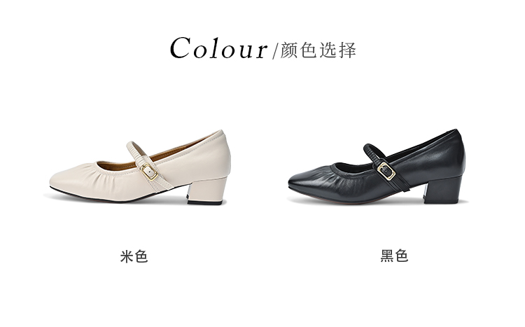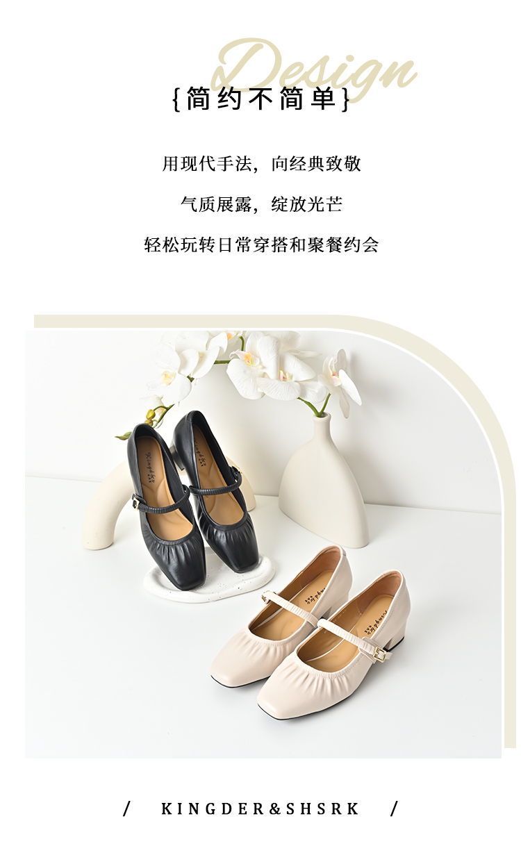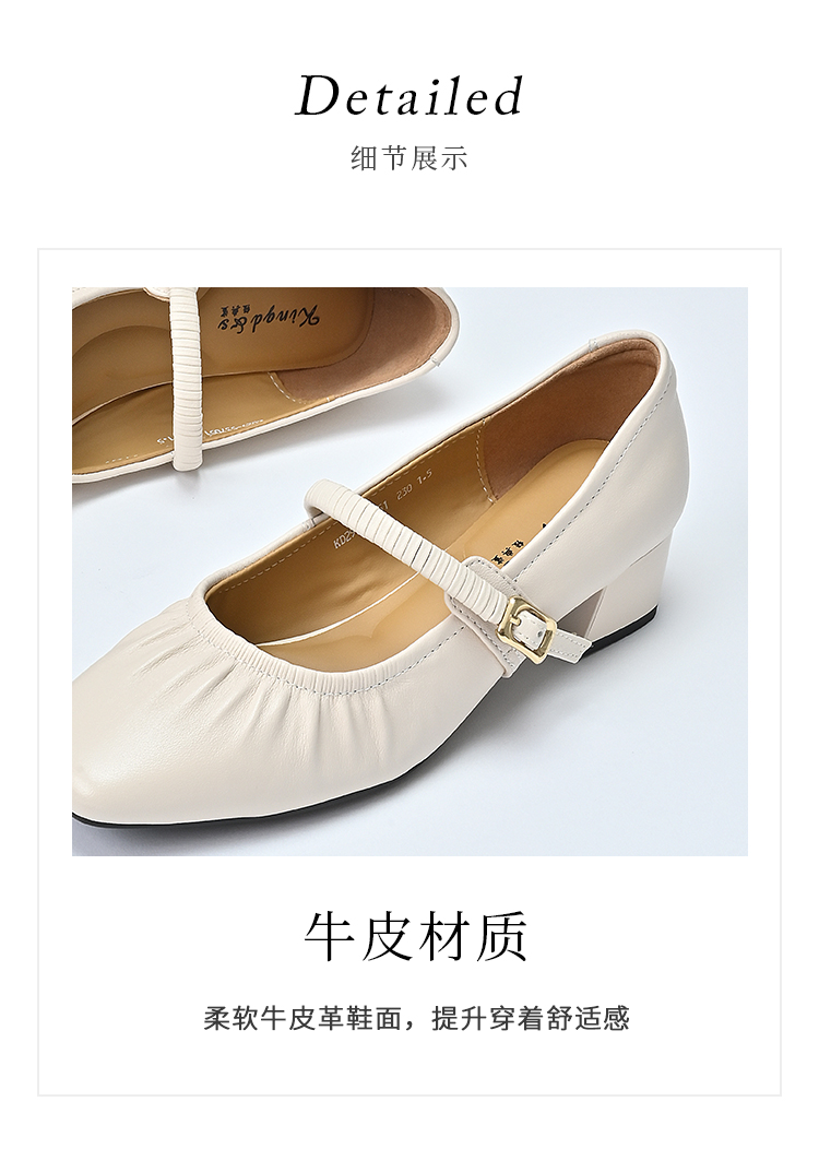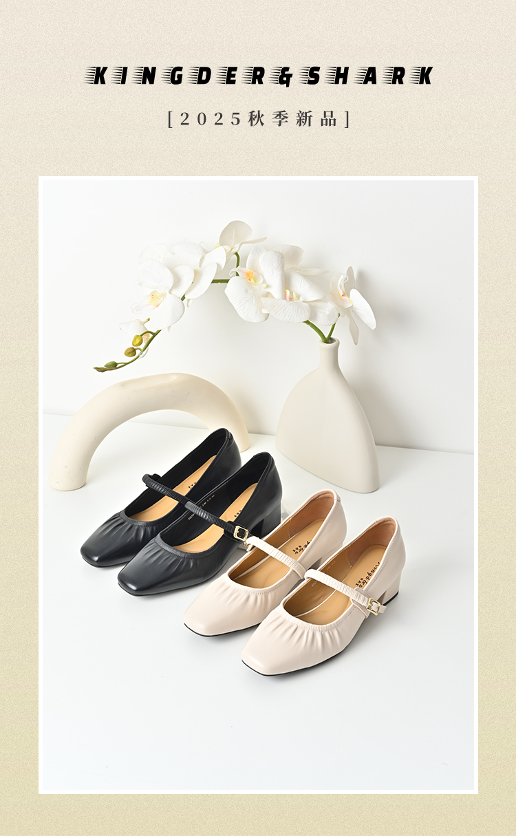 经典鲨2025秋专柜新品牛皮革复古方头气质中粗跟通勤单鞋女KD29-537051
