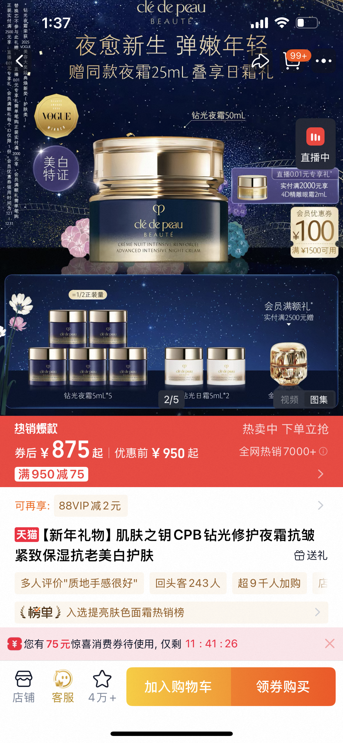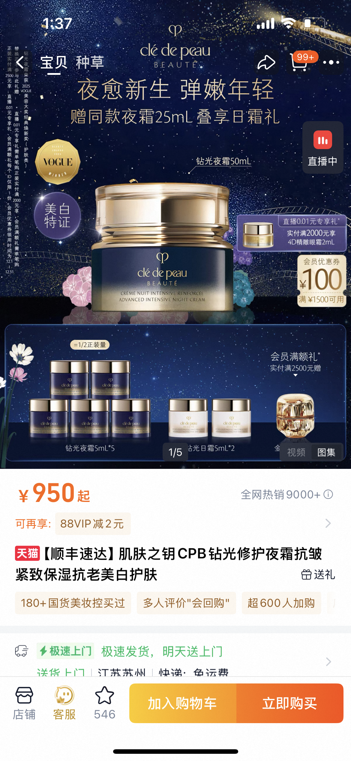 .夜霜日霜各有48瓶!保真正品! cpb钻光日霜夜霜面霜spf25+抗老美白防晒紧致保湿面霜 保质期到26.11 容量12ml