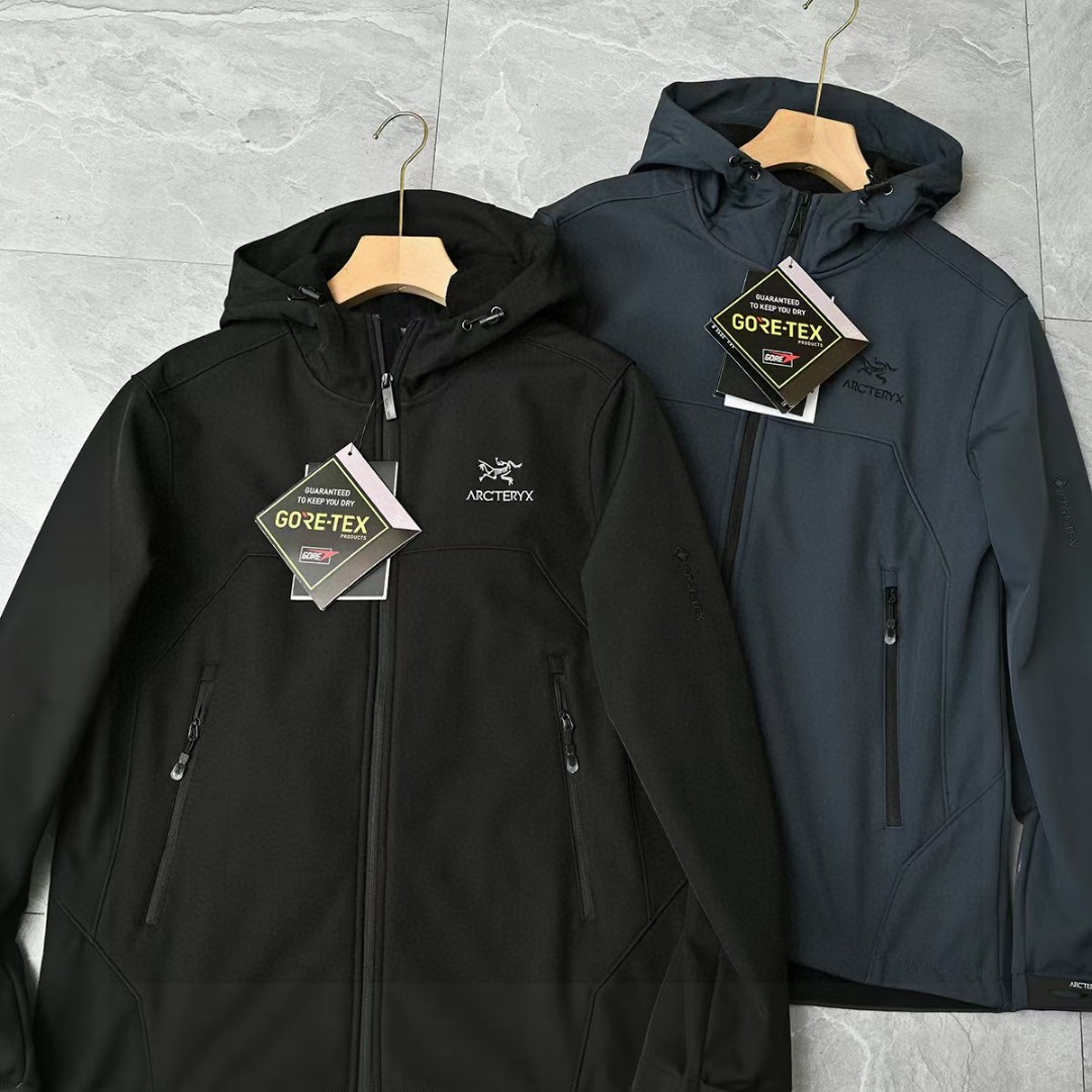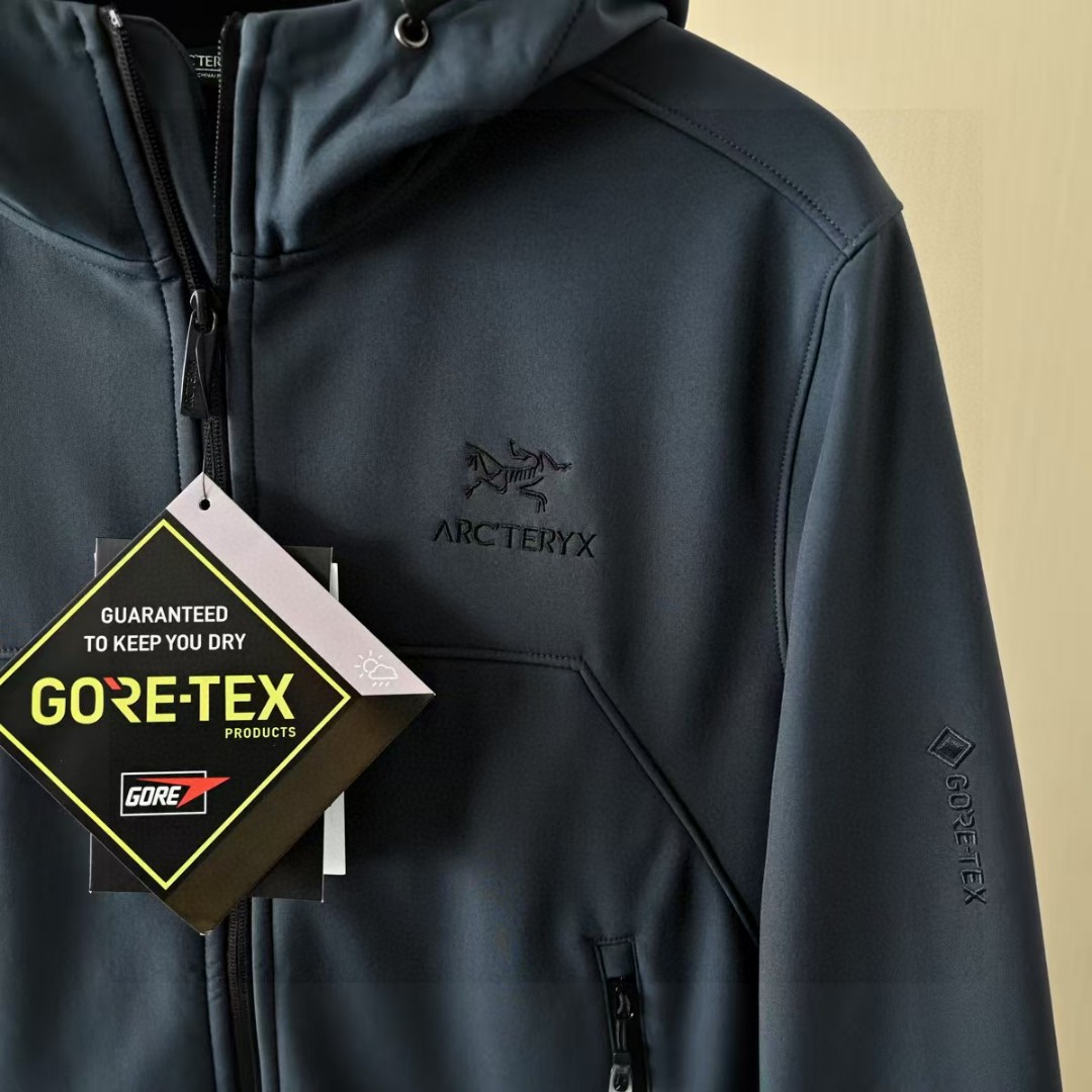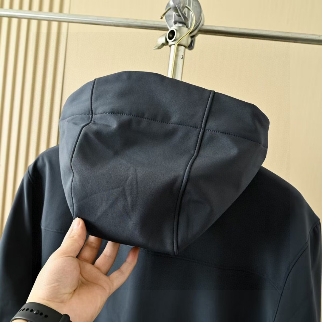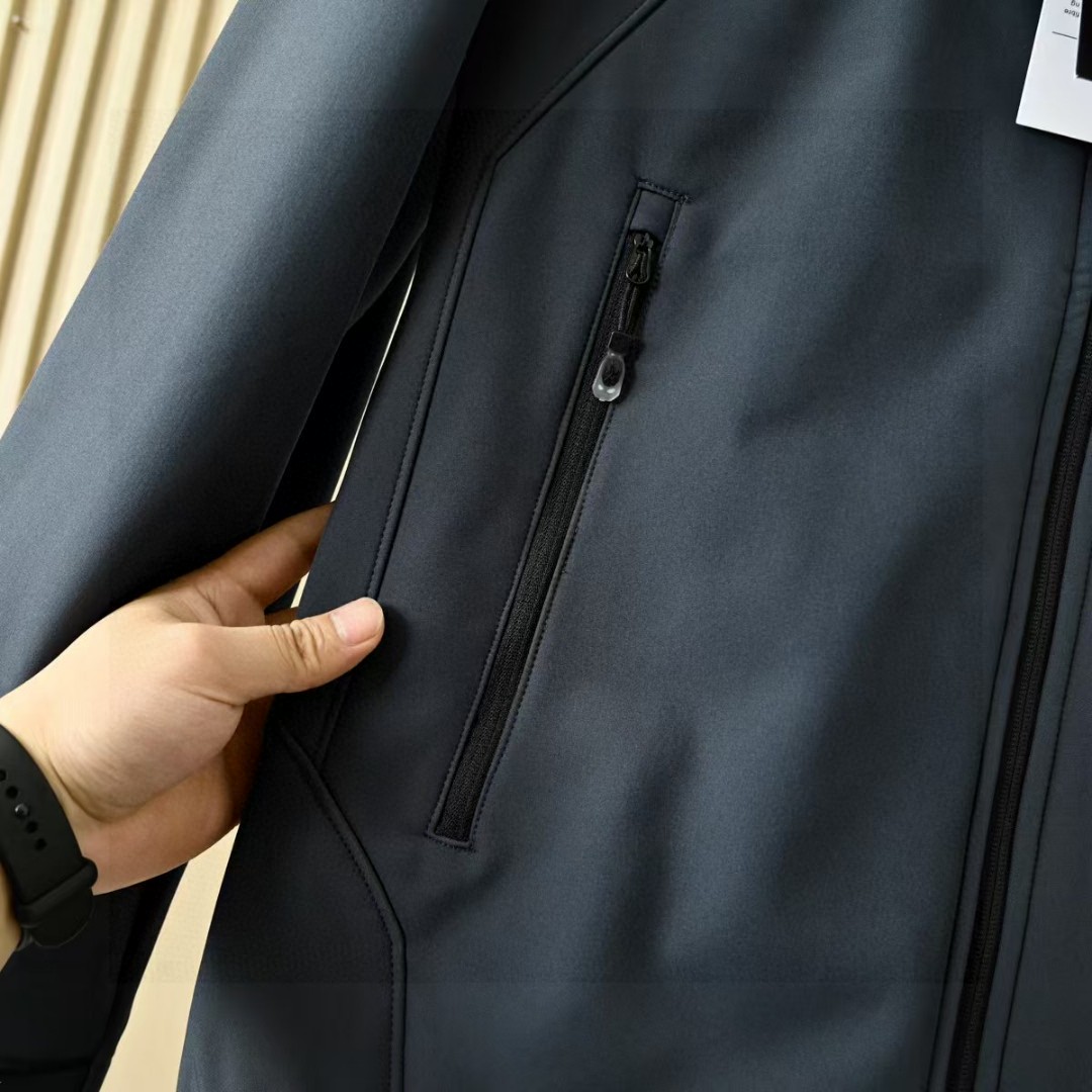 春季加绒外套! 茑家软壳三防功能连帽冲锋衣拉链外套加厚!高弹力梳织面料厚实弹力防风保暖! 做工精细刺绣logo,内里包边。三标一致细节满满!
