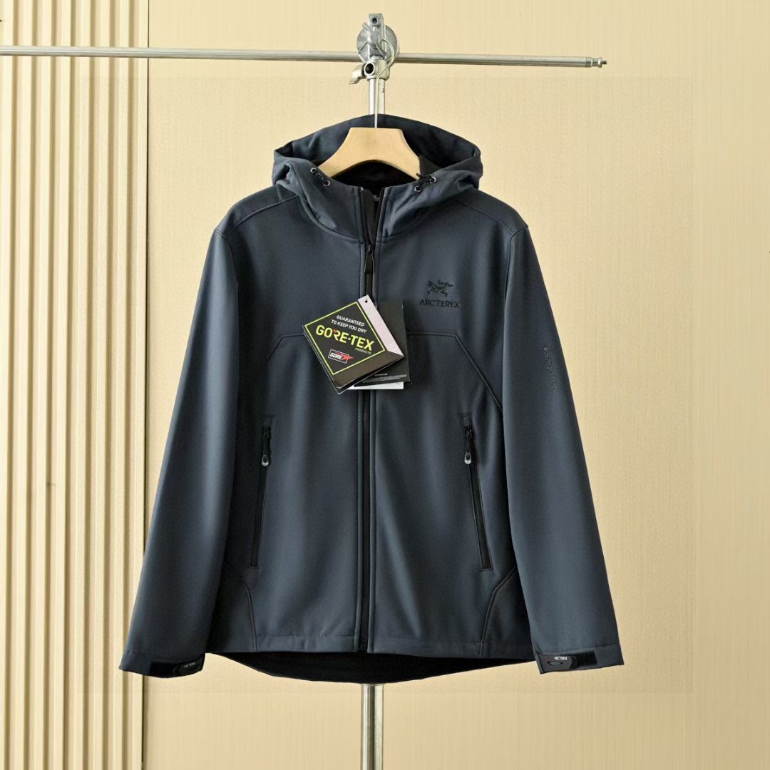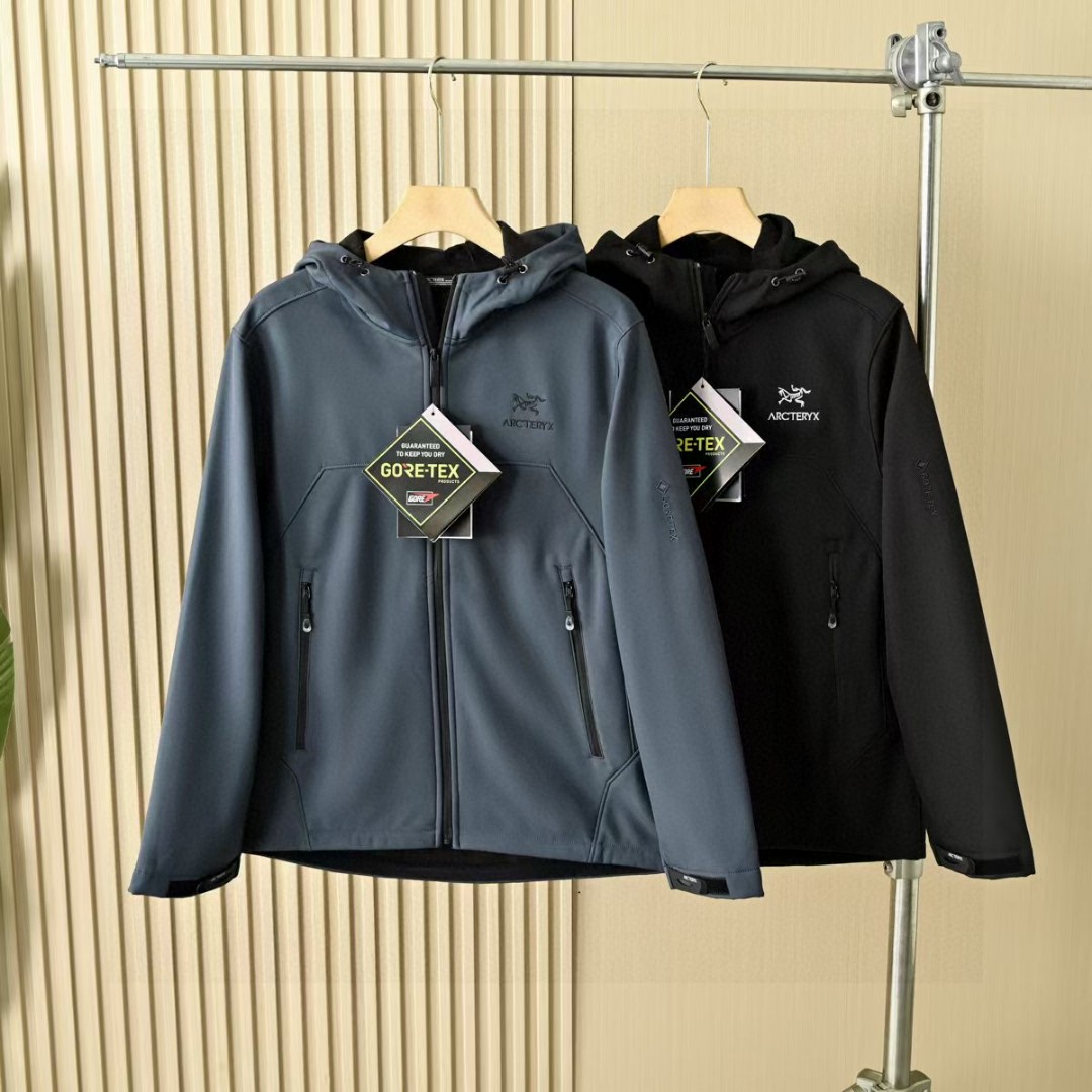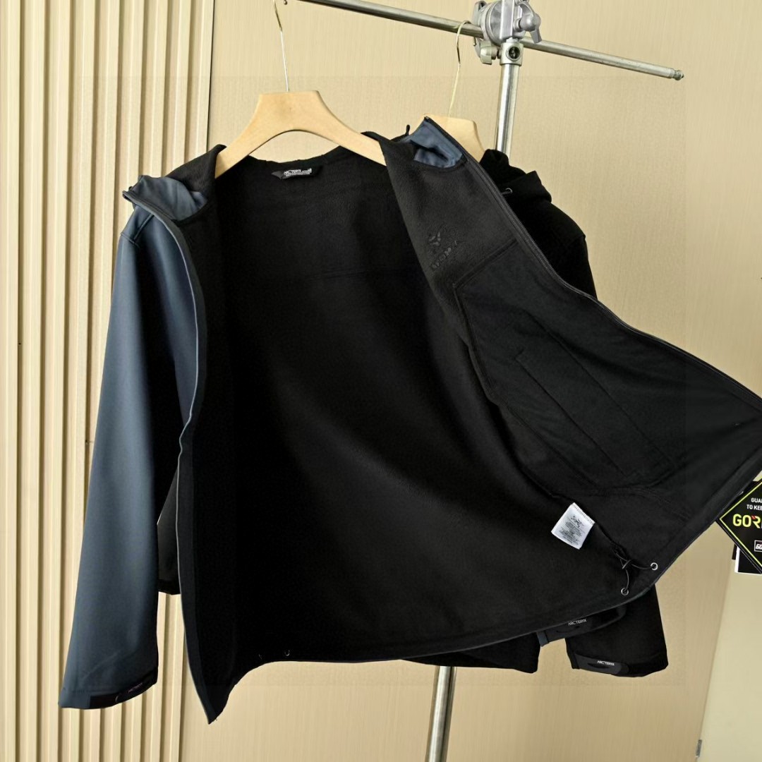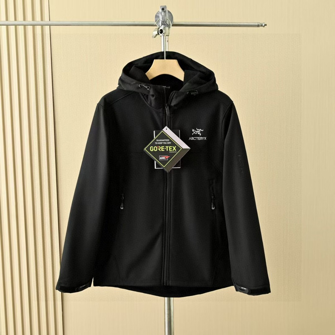 春季加绒外套! 茑家软壳三防功能连帽冲锋衣拉链外套加厚!高弹力梳织面料厚实弹力防风保暖! 做工精细刺绣logo,内里包边。三标一致细节满满!