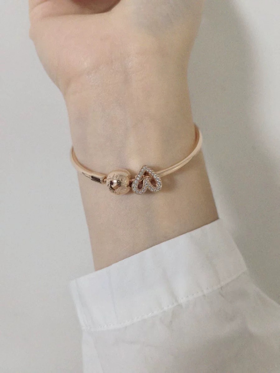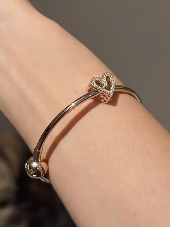 潘多拉情人节新款💘 手镯主体采用高品质材料打造,光泽细腻,质感非凡。搭配的心形串饰,镂空爱心切割工艺雕琢,每一面都折射出迷人光芒,就像把一整个梦幻宇宙收藏腕间。套装内还配有可调节链扣,适配不同腕型,贴心又实用。不管是日常穿搭还是重要场合,它都能成为点睛之笔,让你举手投足间尽显优雅,绽放专属魅力,快来开启独属于你的璀璨时刻 。