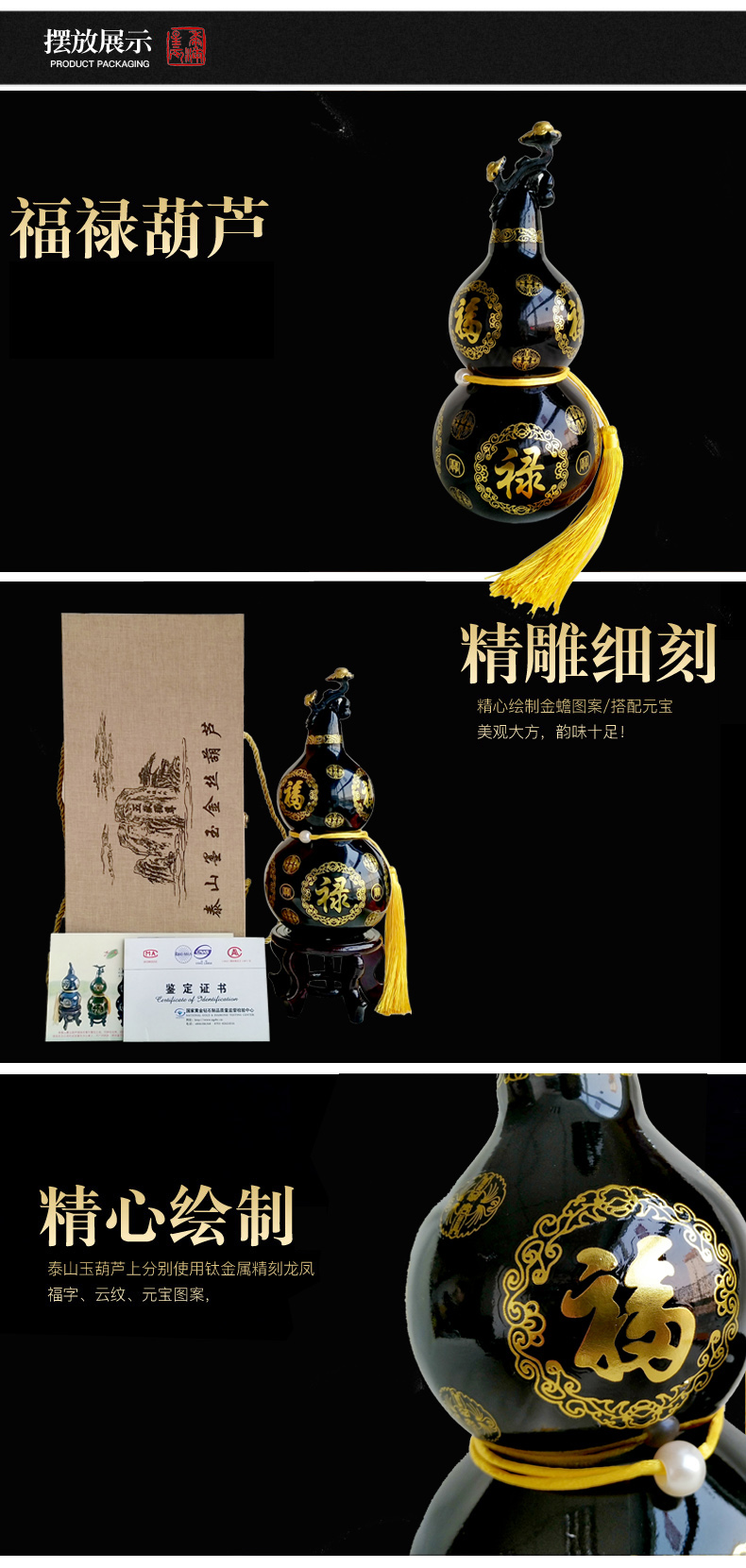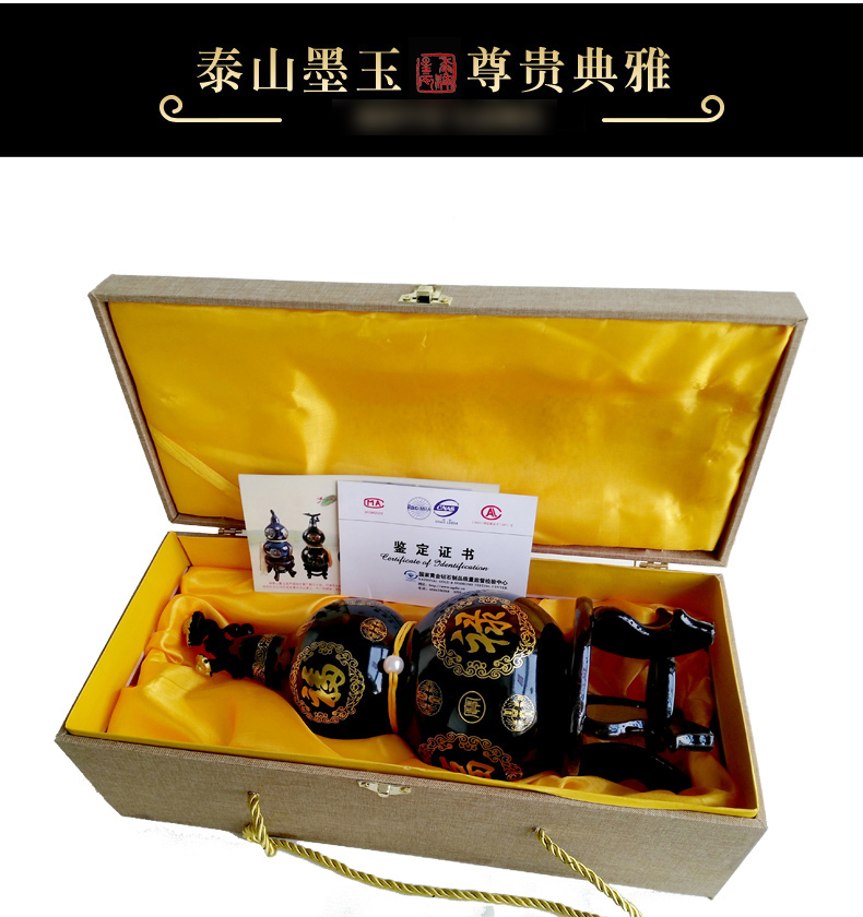 泰山石墨玉金丝葫芦办公室装饰家居摆件工艺品开业礼品