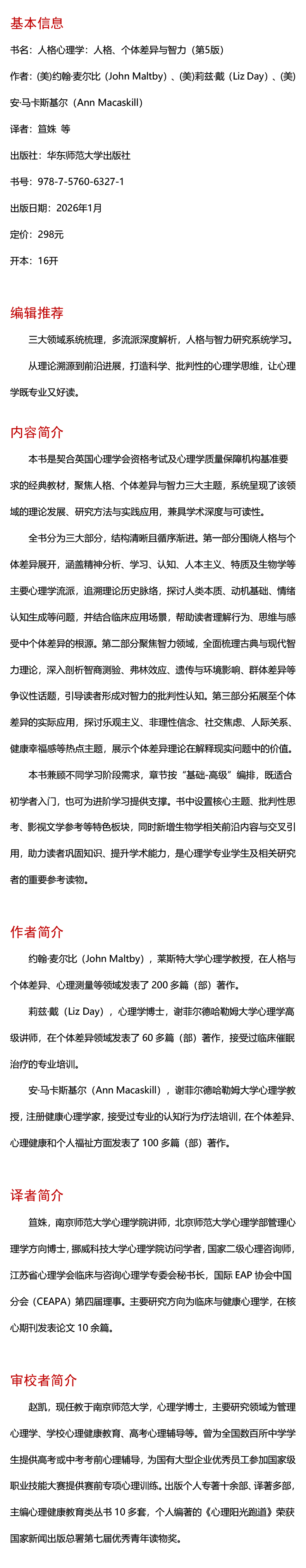人格心理学:人格、个体差异与智力 第5版 上中下3册 心理学经典译丛