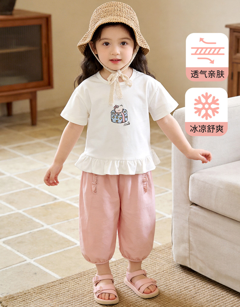 【花边口袋休闲裤】迪士尼2025春夏新款女童凉感长裤宽松透气防蚊抖抖裤ZD2EK005