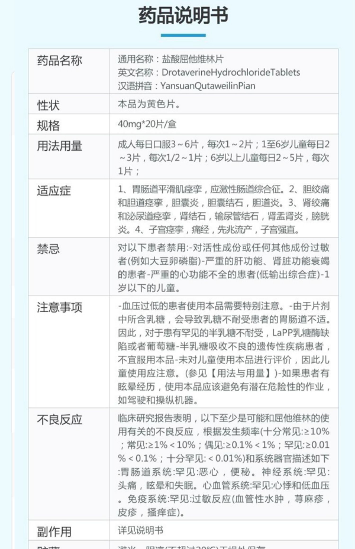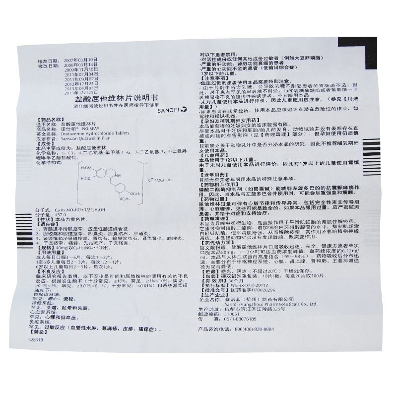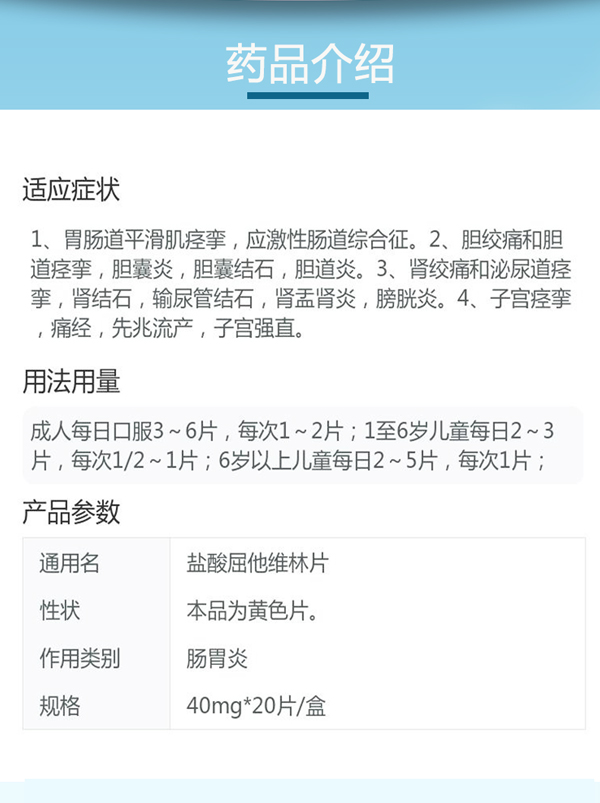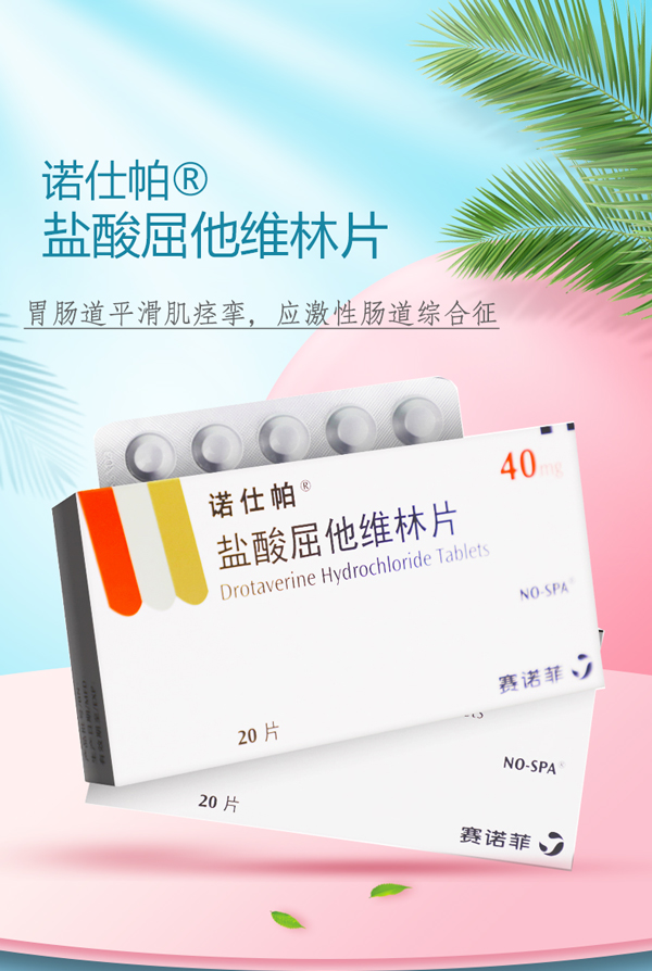 诺仕帕 盐酸屈他维林片 40mg*20片/盒胃肠道平滑肌痉挛 胆绞痛 胆囊炎 肾绞痛肾结石膀胱炎 痛经先兆流产