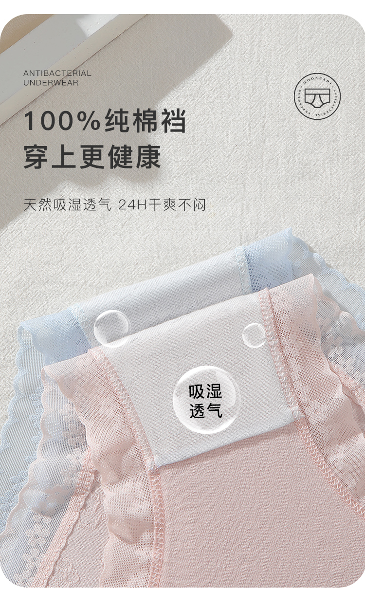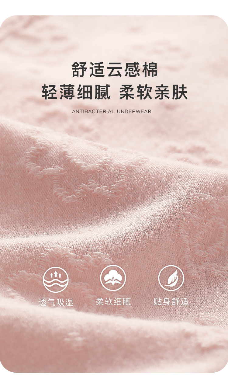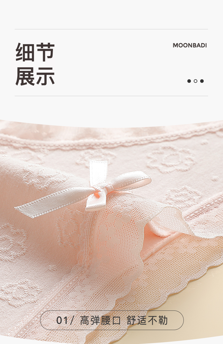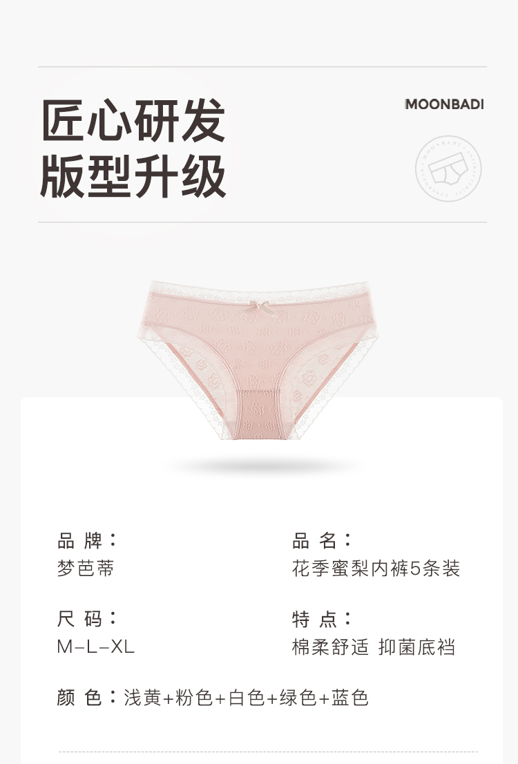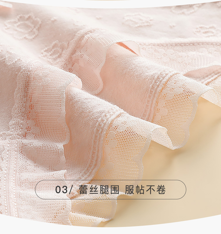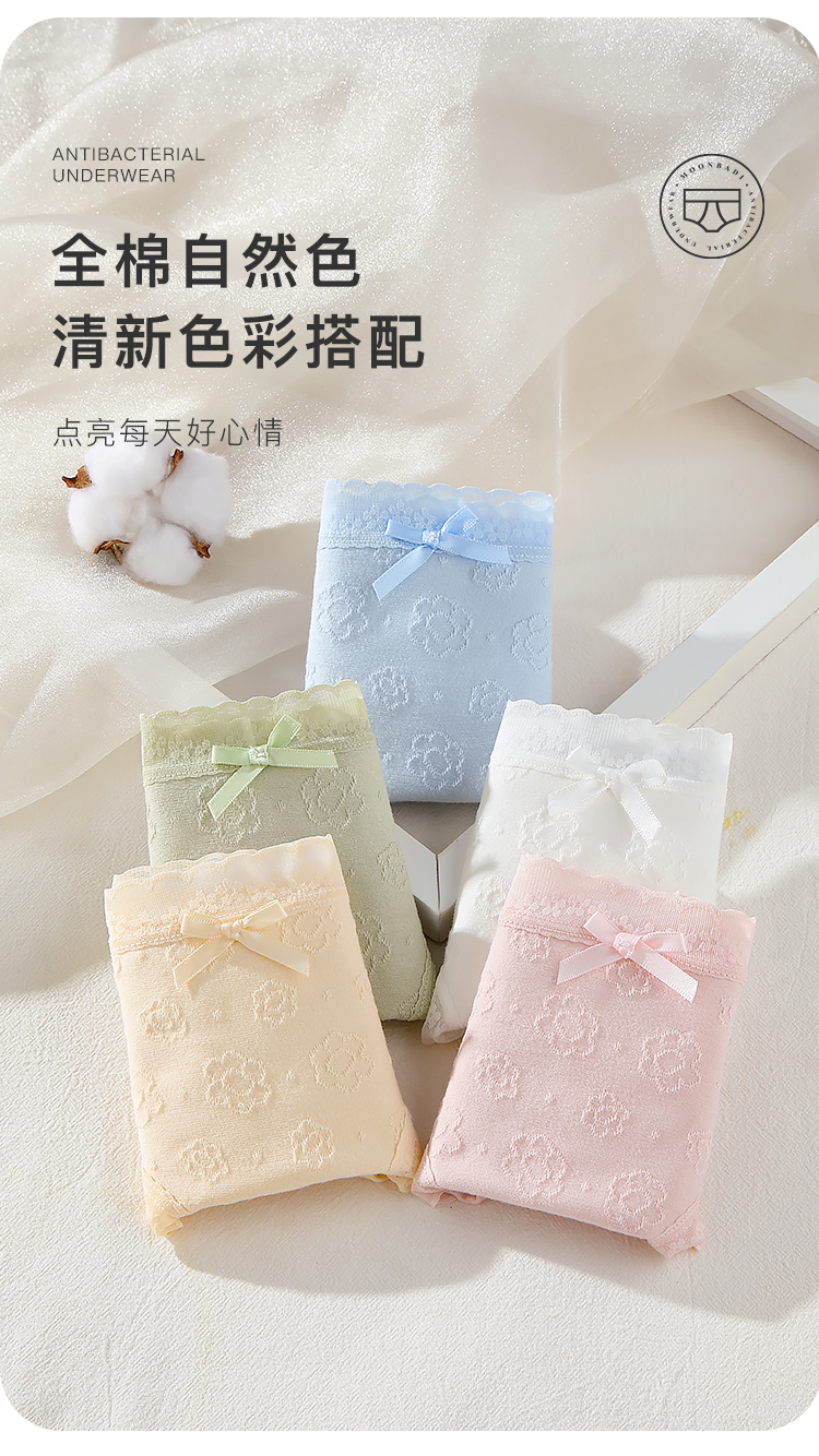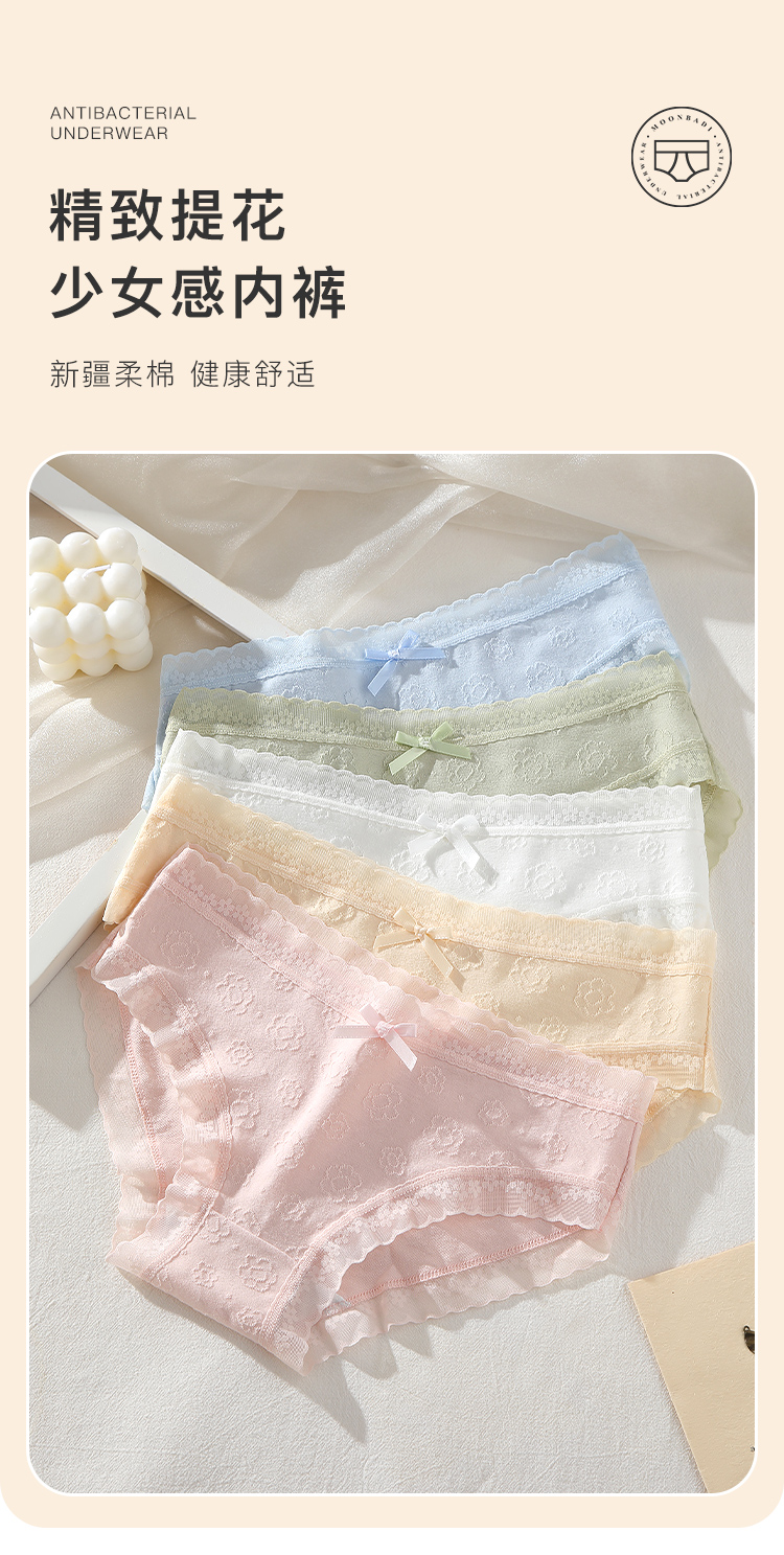 【7A级纯棉抑菌】内裤女甜美蕾丝立体提花三角内裤全棉裆6627#花季蜜梨内裤5条装