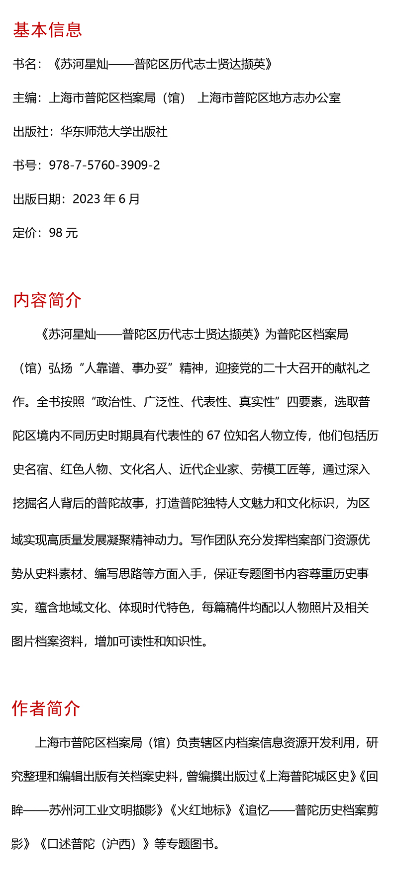 苏河星灿——普陀区历代志士贤达撷英