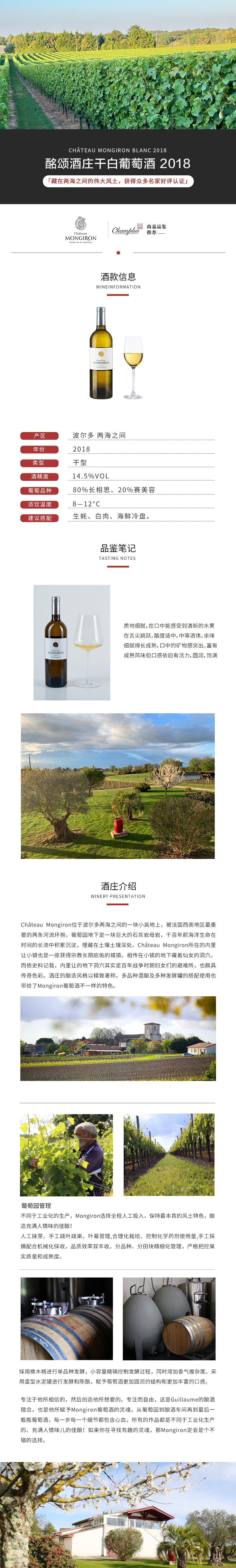 酩颂酒庄干白葡萄酒2018年 Château Mongiron Blanc 2018