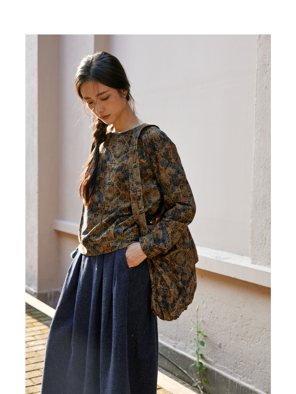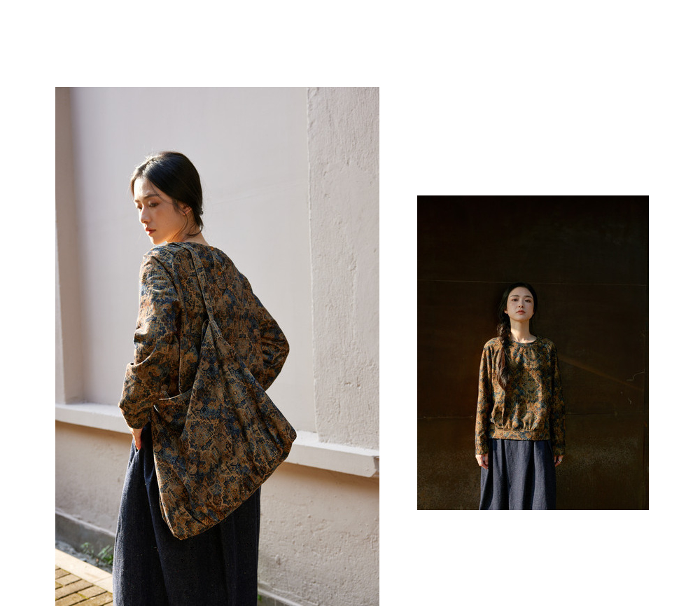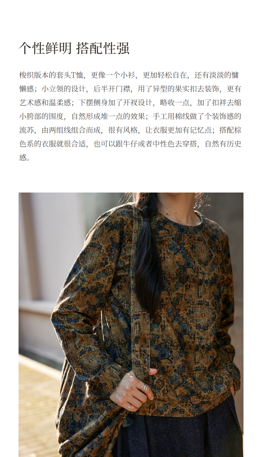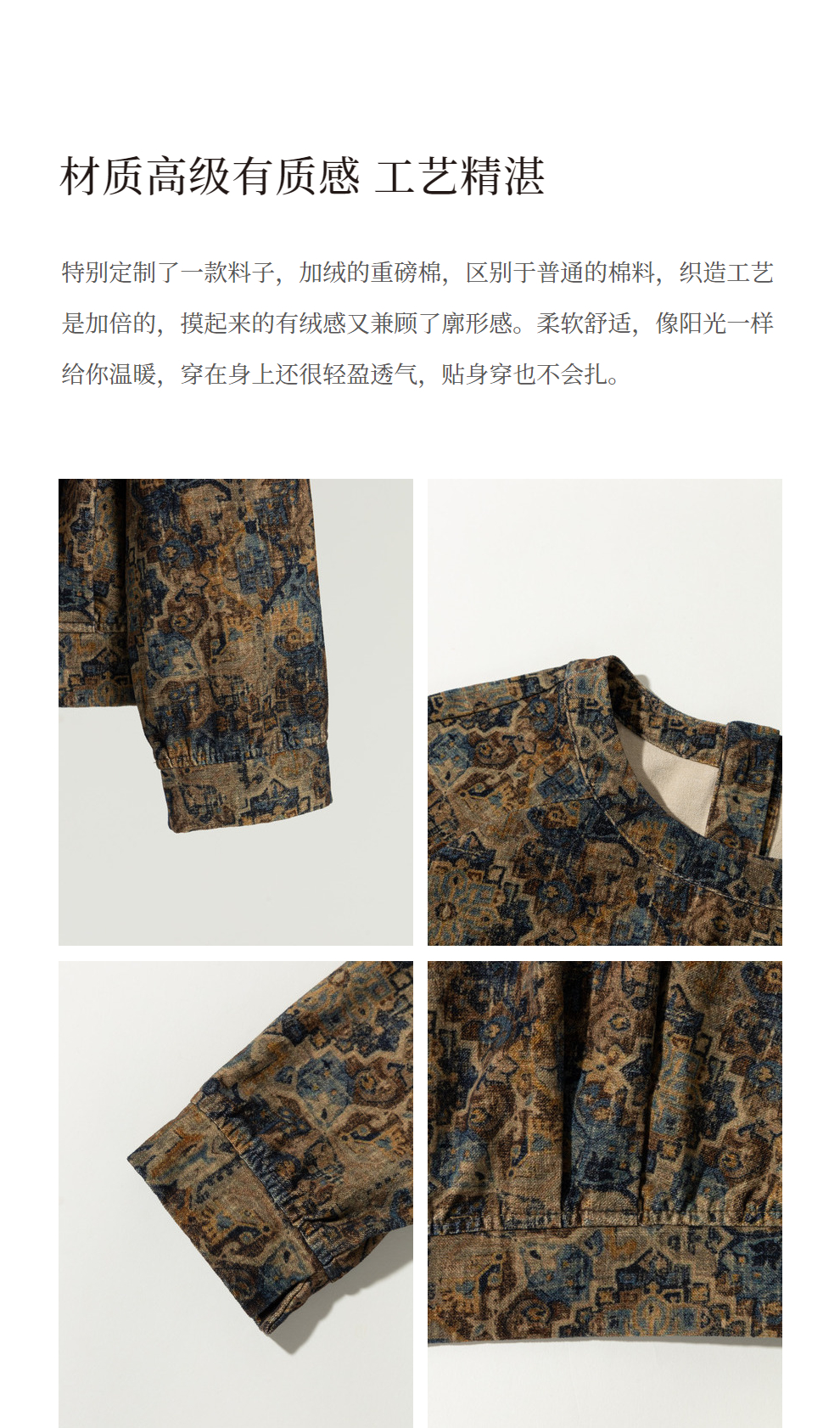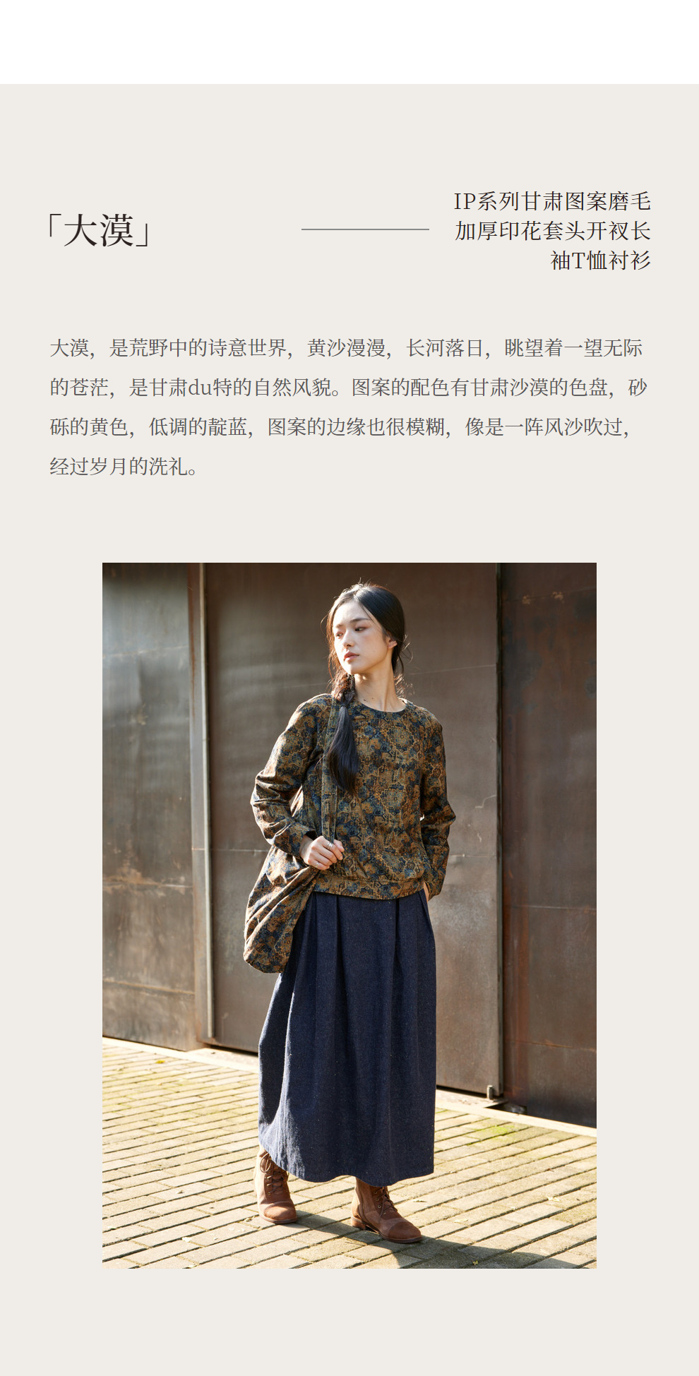 绽放864朵/大漠色甘肃地貌印花加绒重磅纯棉加厚高级艺术感衬衫