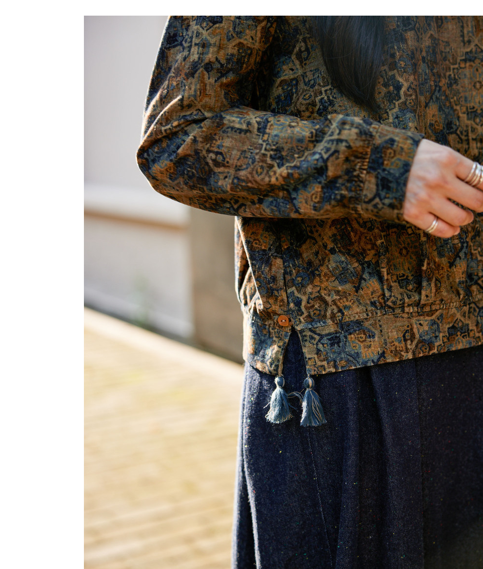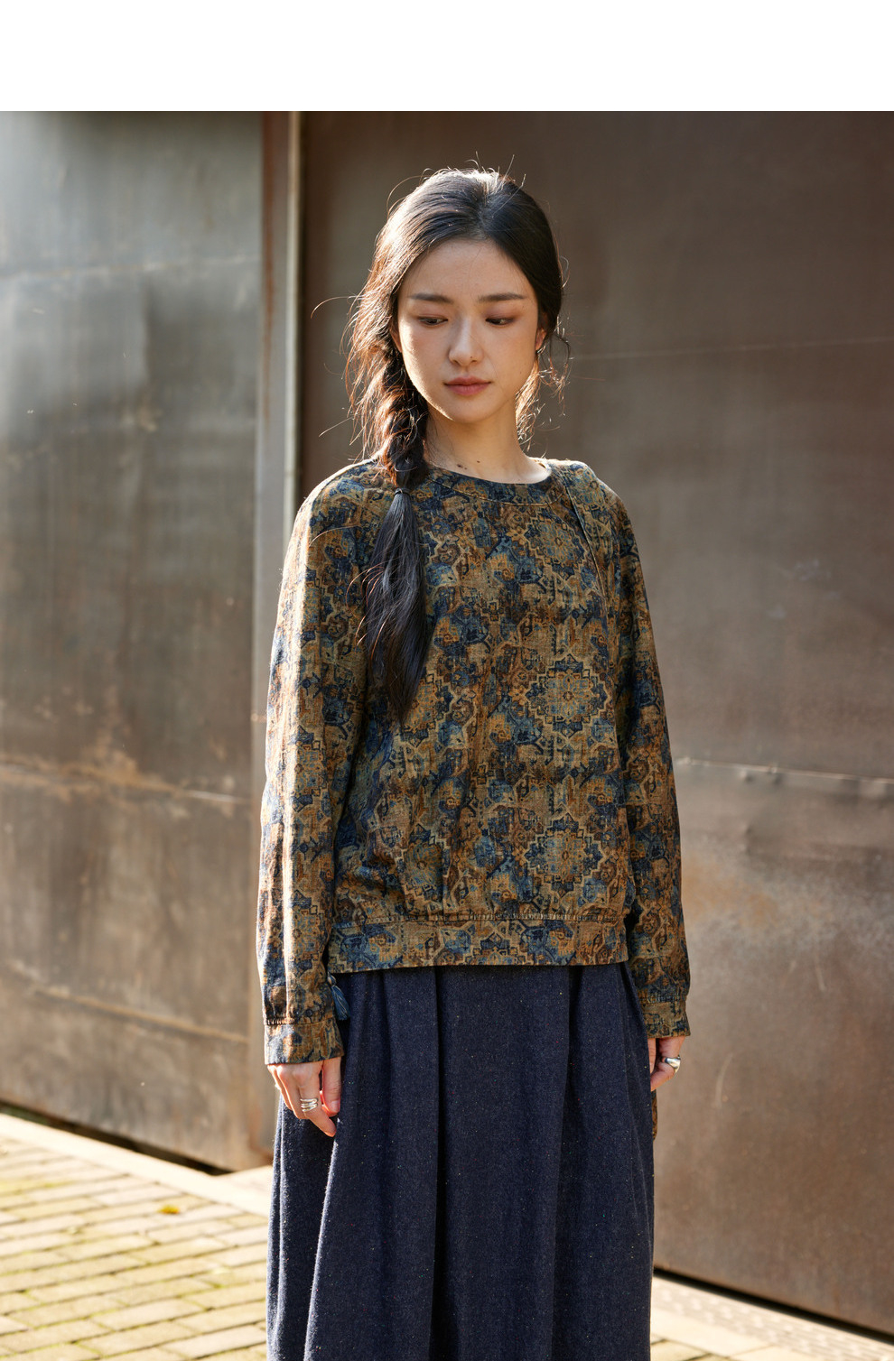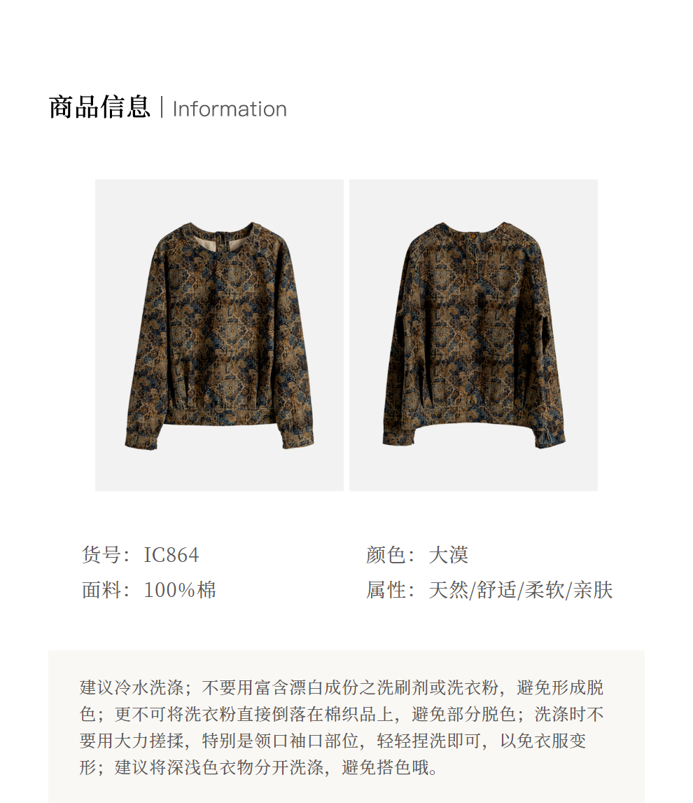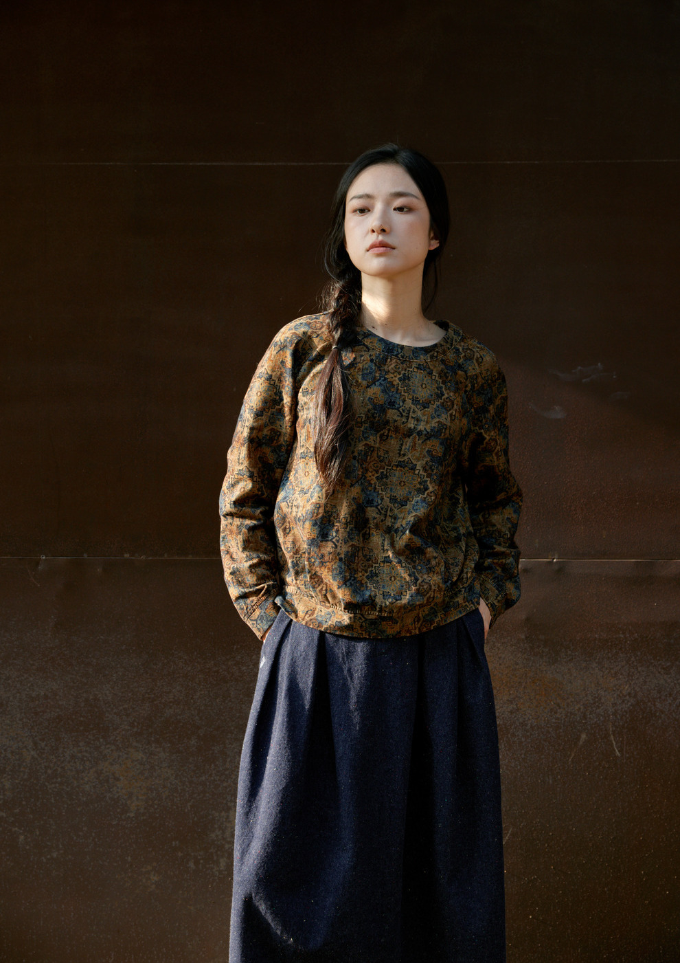 绽放864朵/大漠色甘肃地貌印花加绒重磅纯棉加厚高级艺术感衬衫