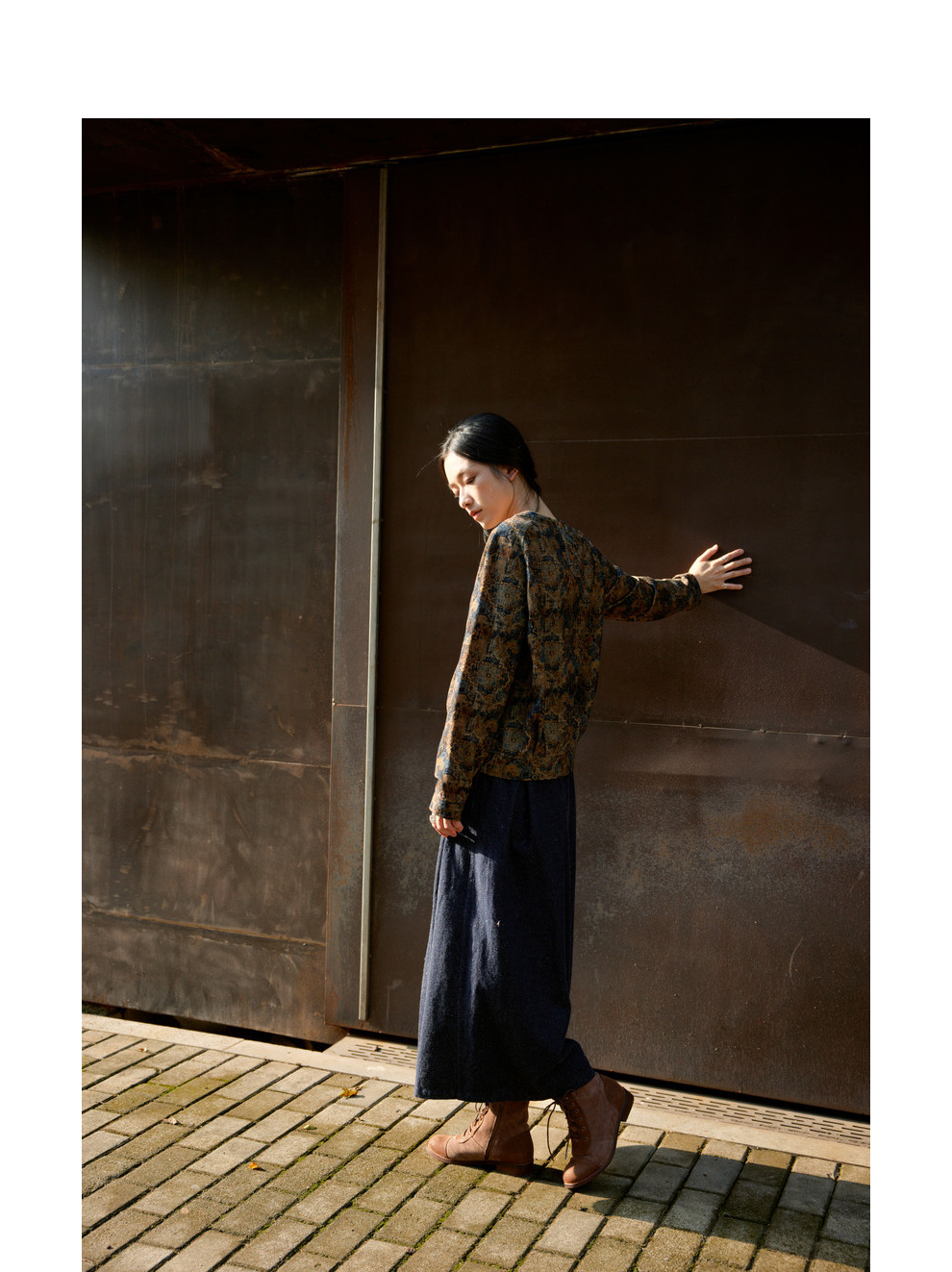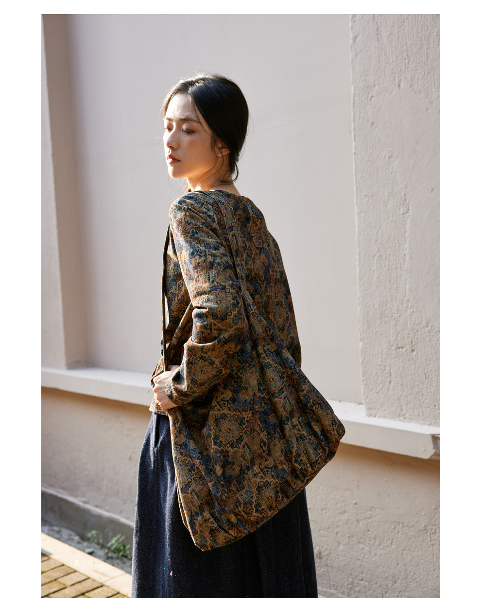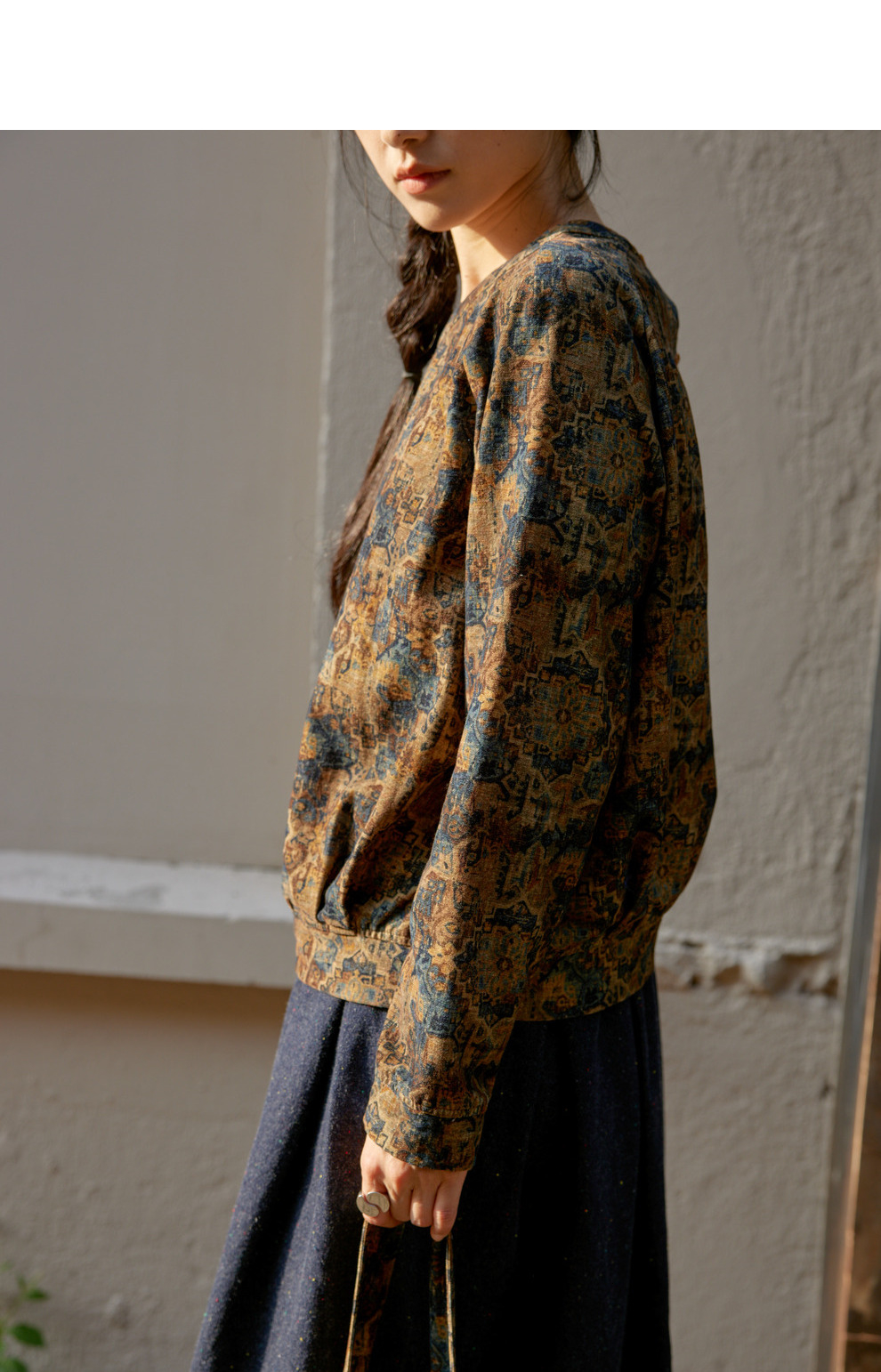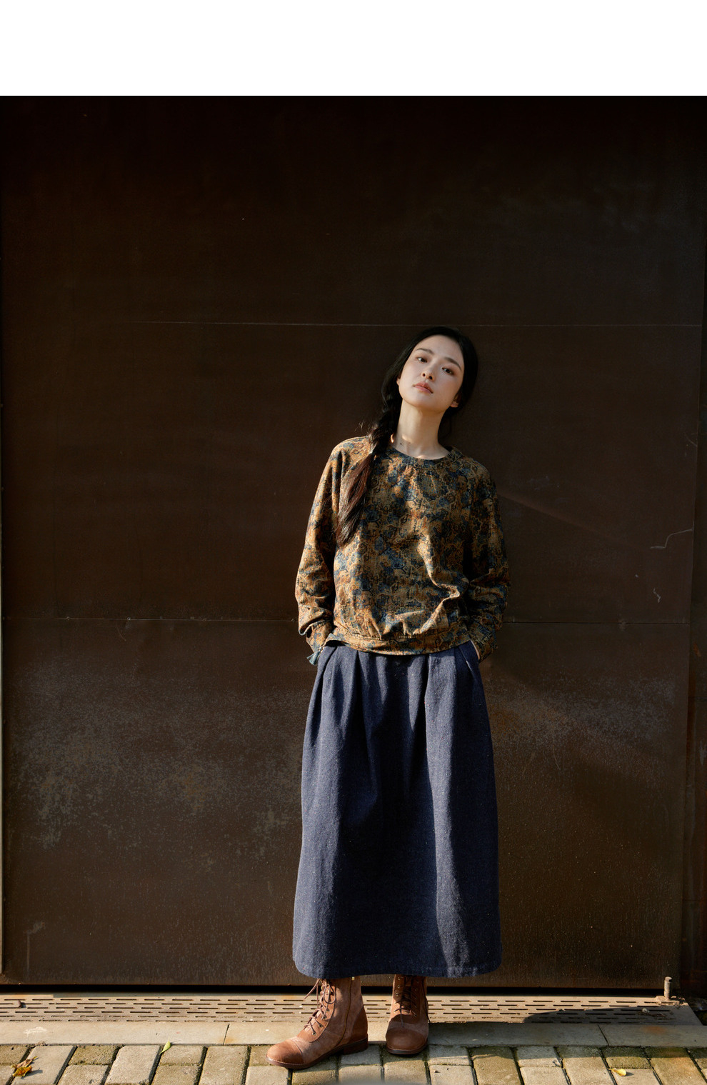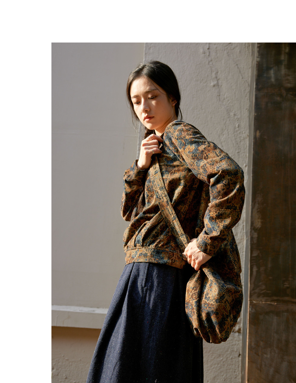 绽放864朵/大漠色甘肃地貌印花加绒重磅纯棉加厚高级艺术感衬衫