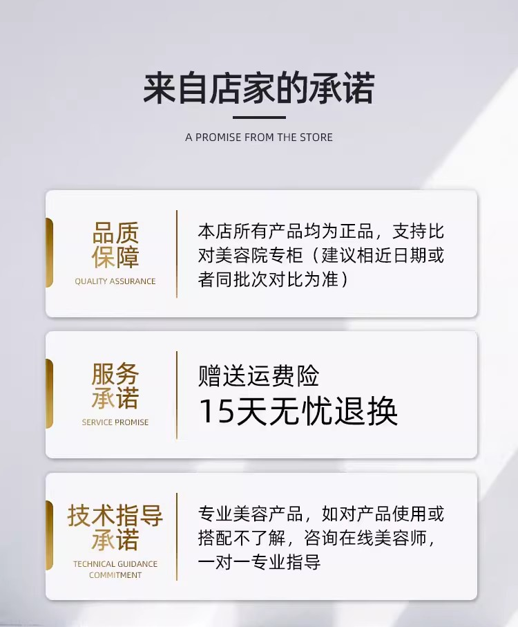 产品功效:补充肌肤所需要的营养及水分,恢复肌肤紧实性及弹性,提升肌肤活力,减轻细纹增生,肌肤莹润,饱满。