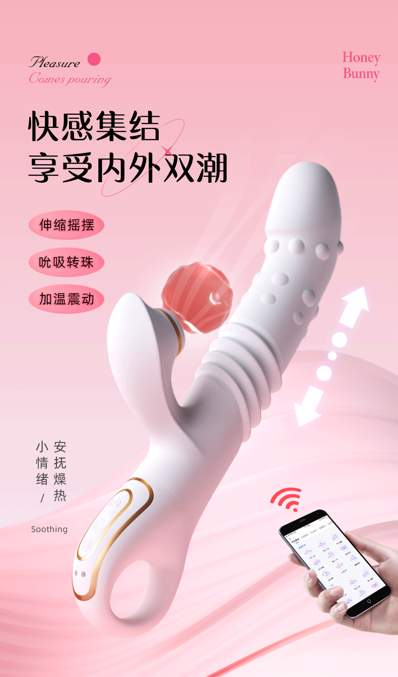 优奈 秒潮遥控自慰器吮吸转珠震动女性自动伸缩震动棒情趣用品成人入体玩具高潮转珠棒神器