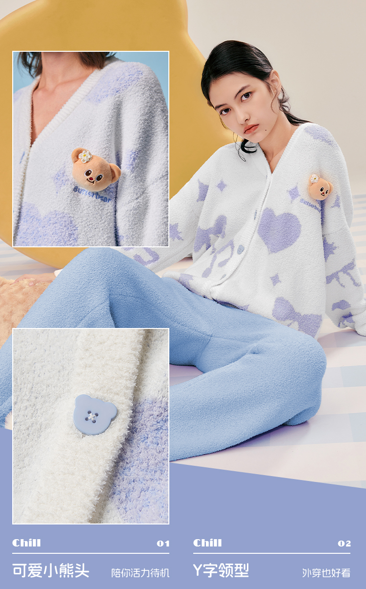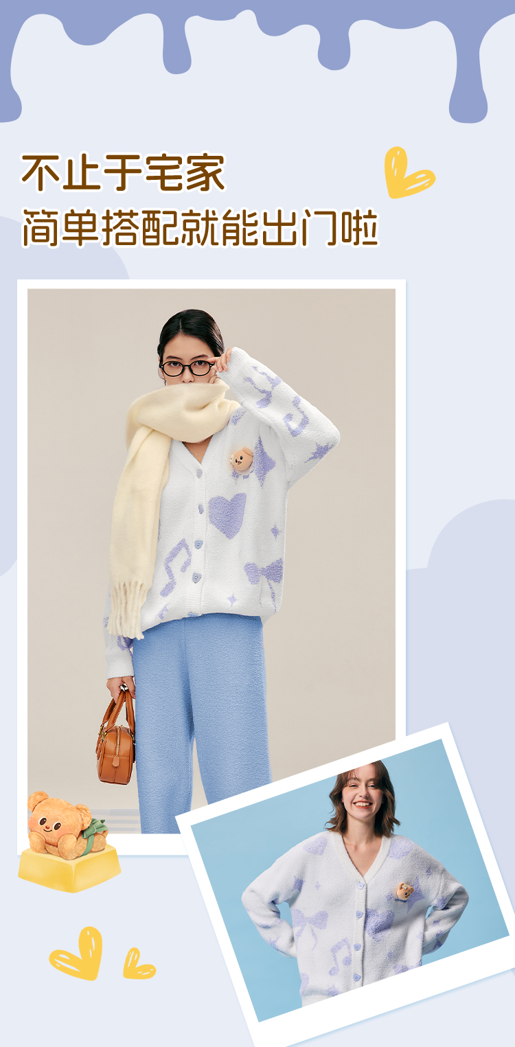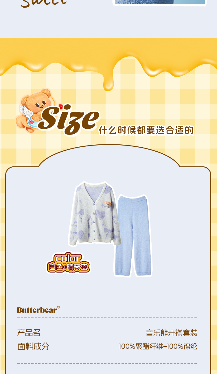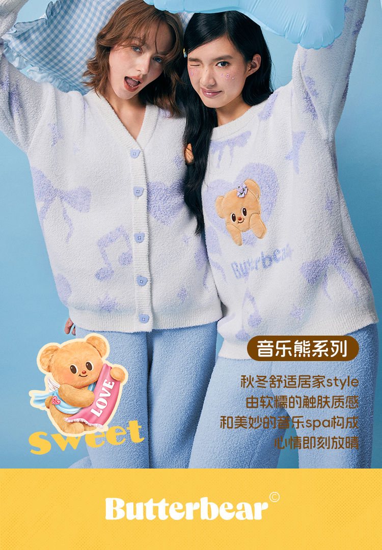 黄油小熊联名[音乐熊开襟套装]睡衣松弛感保暖秋冬居家