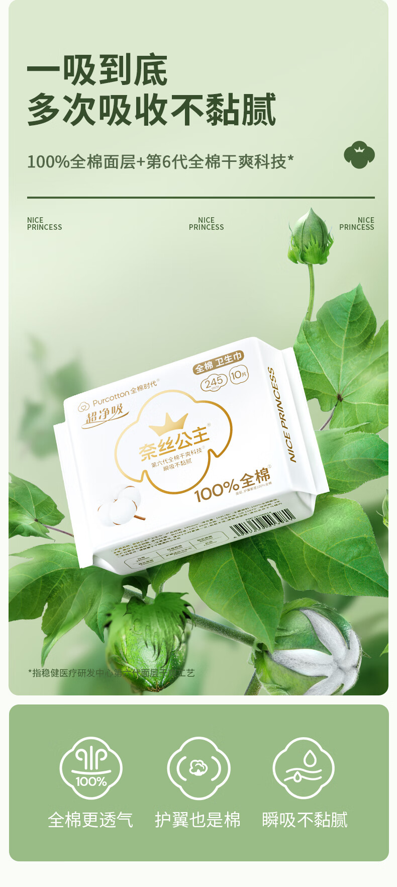 【积分兑换】全棉时代(Purcotton)奈丝公主超净吸2月装8包 PMC23700023