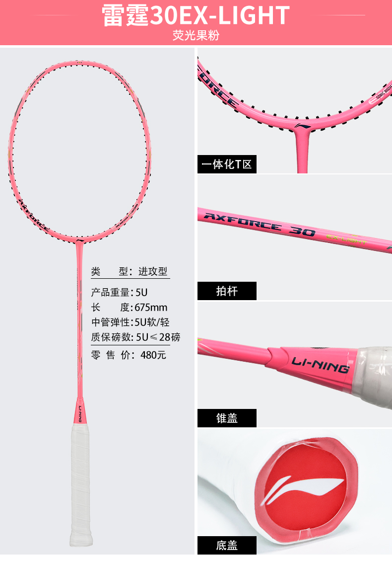 李宁雷霆30EX羽毛球拍单拍全碳素超轻进攻型羽毛球拍 高磅训练拍