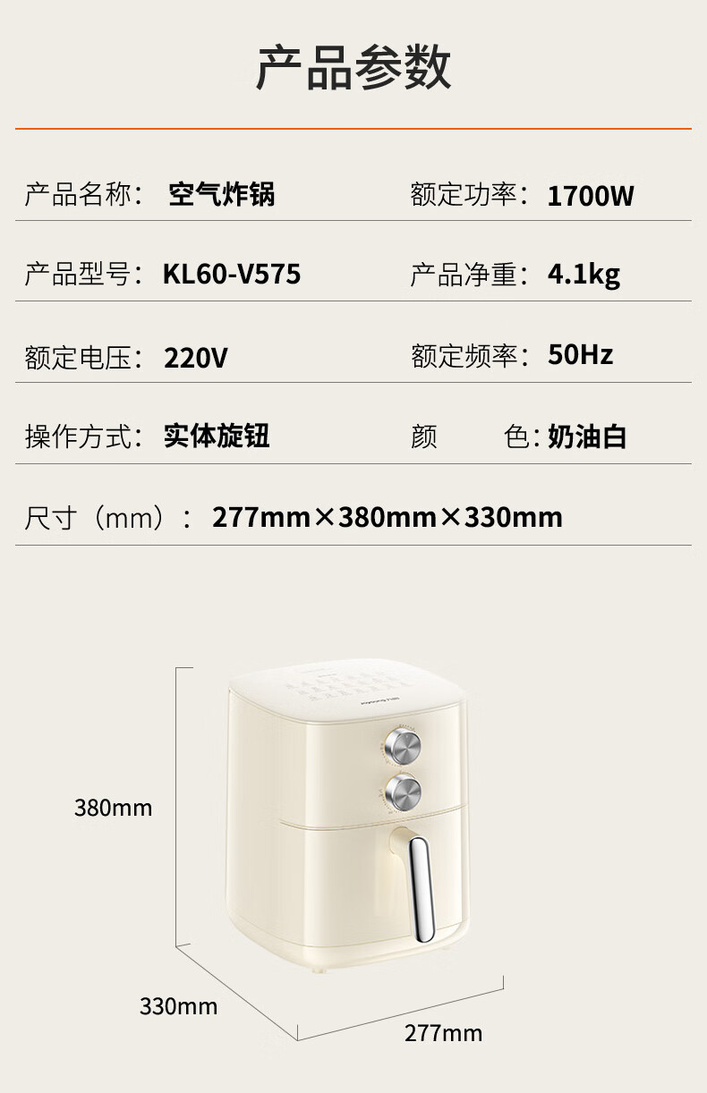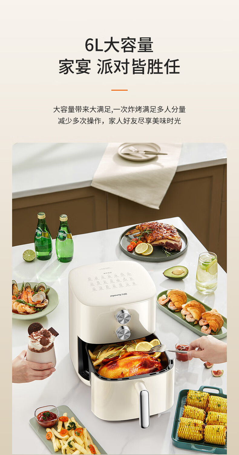 九阳空气炸锅家用5L大容量多功能无油煎炸微蒸汽嫩烤不翻面电炸锅