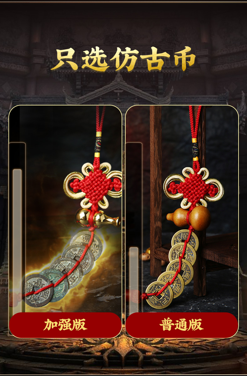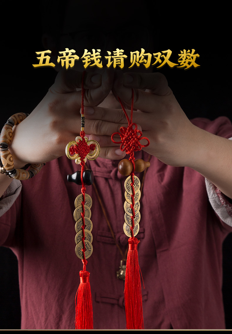 灵机吉品正五帝钱压门槛纳财铜钱中国结编织红绳挂饰