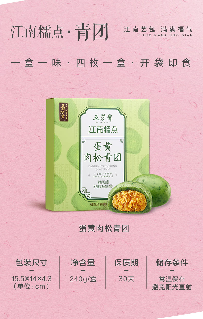 【99积分兑换】 五芳斋 蛋黄肉松青团 网红糕点青团子 60克*4只
