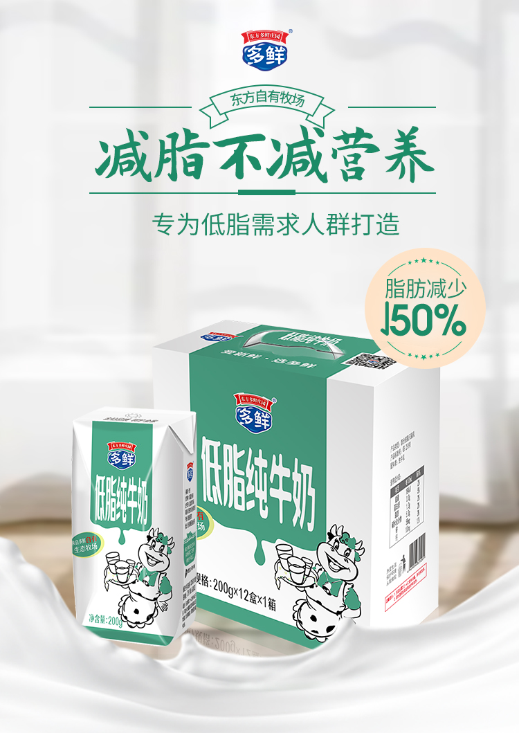 多鲜低脂纯牛奶 200g*12(生产日期2021.12.10 保质期6个月)