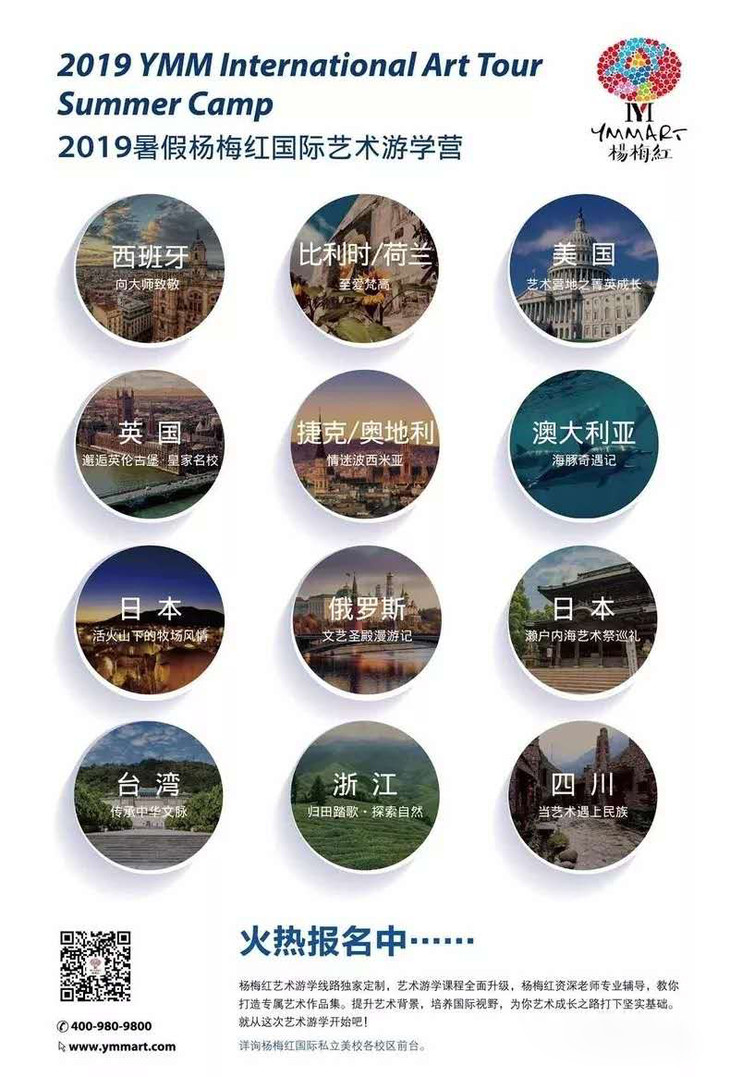 除此之外,杨梅红每年都会推出“国际艺术游学计划”。学生们可以前往美国、加拿大、英国、法国、德国、意大利等国家和地区进行国际游学,感受多元文化;