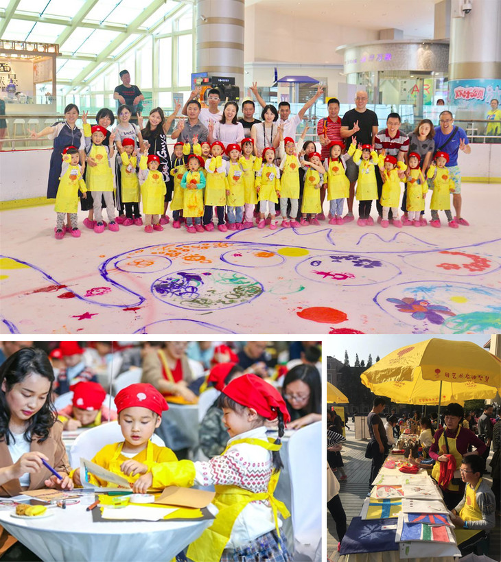 活动更是多姿多彩,每个校区每天都有不同的活动在开展,艺术写生、亲子手工DIY、冰上绘画、阿漫飞梨创意集市……让孩子们的艺术生活更加五彩斑斓!