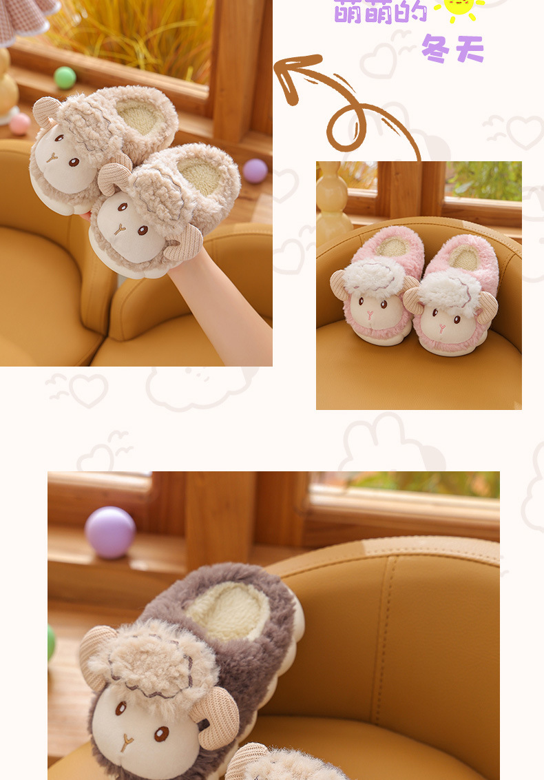 【可爱小绵羊宝宝防滑毛毛拖鞋】儿童棉拖鞋男童女童冬季新款室内居家