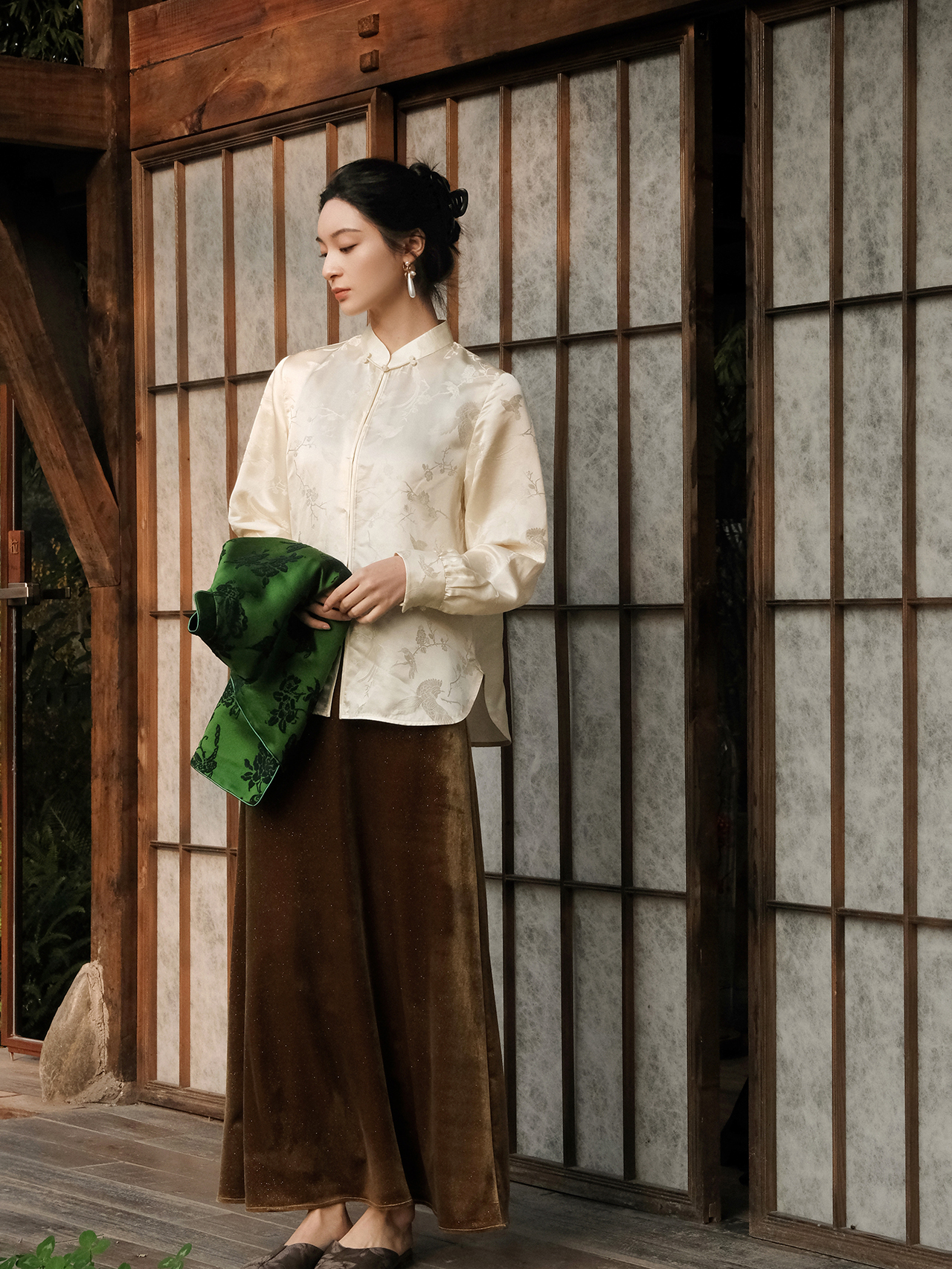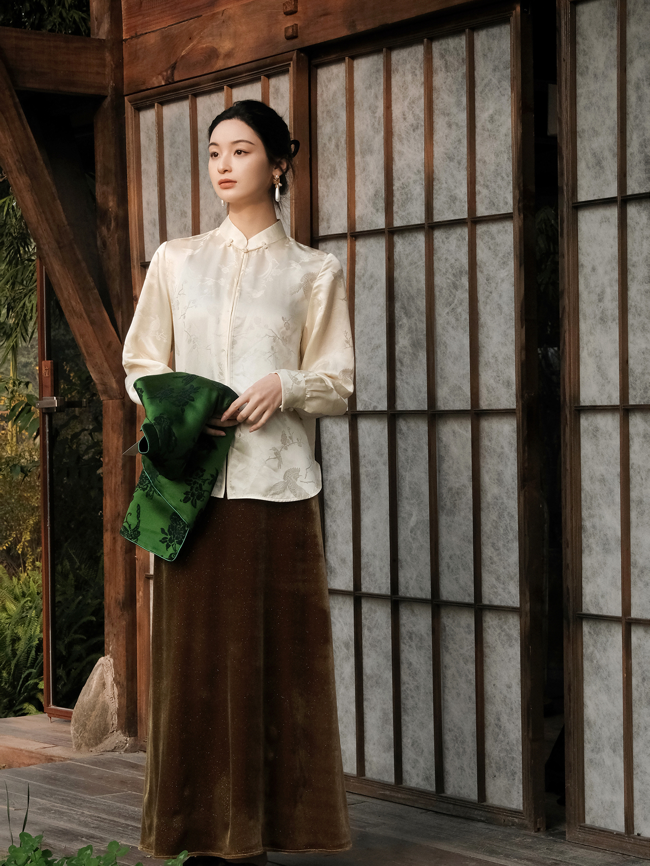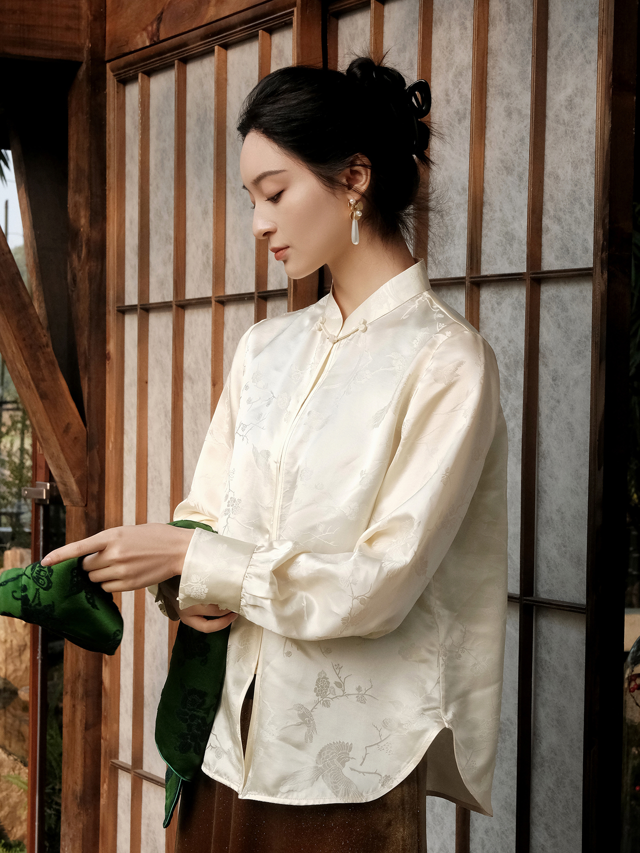 盛唐婧 | 新中式桑蚕丝百搭立领对襟衬衫-香槟色