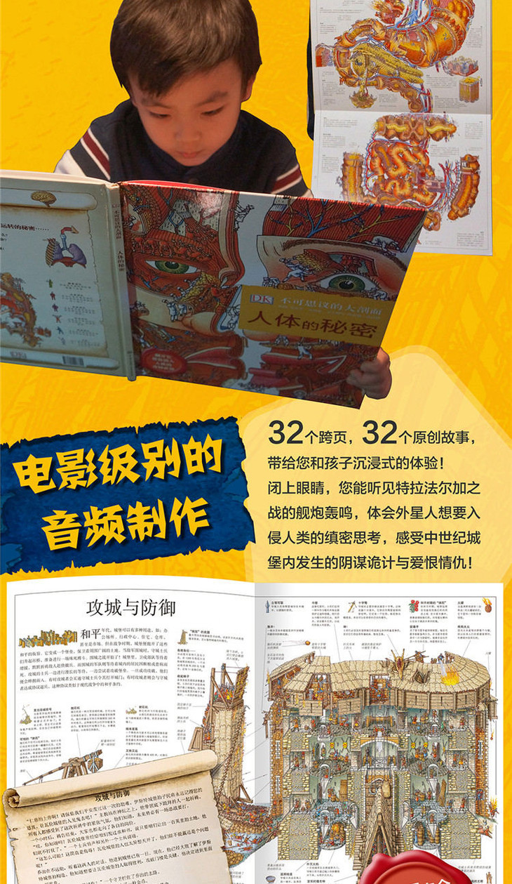 《DK不可思议的大剖面》 精装全彩3册 人体的秘密+战舰的秘密+城堡的秘密