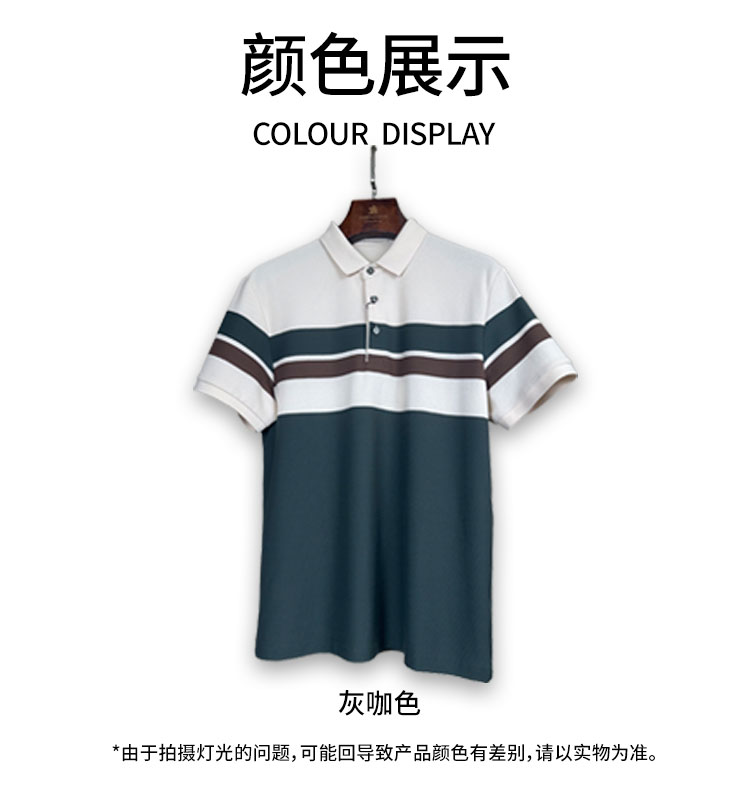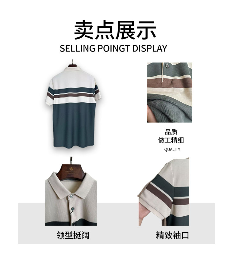 占姆士男士夏季网眼珠地棉条纹POLO翻领T恤下摆开叉新款潮流男装上衣