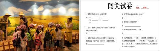 集体前往“沙漠博物馆”参观学习“享誉世界的治沙成果—麦草方格”,并了解沙坡头的发展历史进程。通过现场听讲解,捕捉信息,完成闯关试卷(闯关试卷完成方可获取新任务)