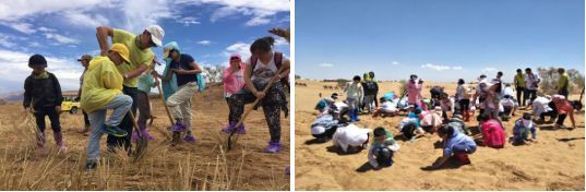 在沙漠博物馆里学习的理论知识要实操啦!和爸爸妈妈们一起完成麦草方格扎设任务~
