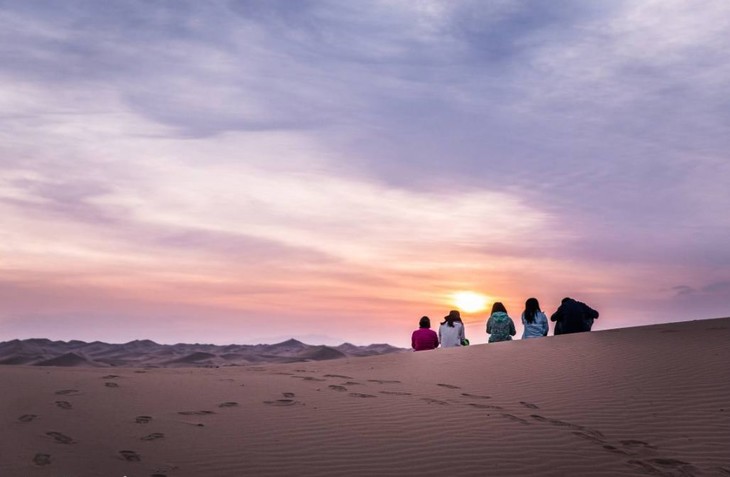 前一晚在沙漠里露营,第二天一早叫醒孩子,一起观赏沙漠日出奇观,留下一个难忘的日出经历。(能否看日出需根据实际天气情况而定)