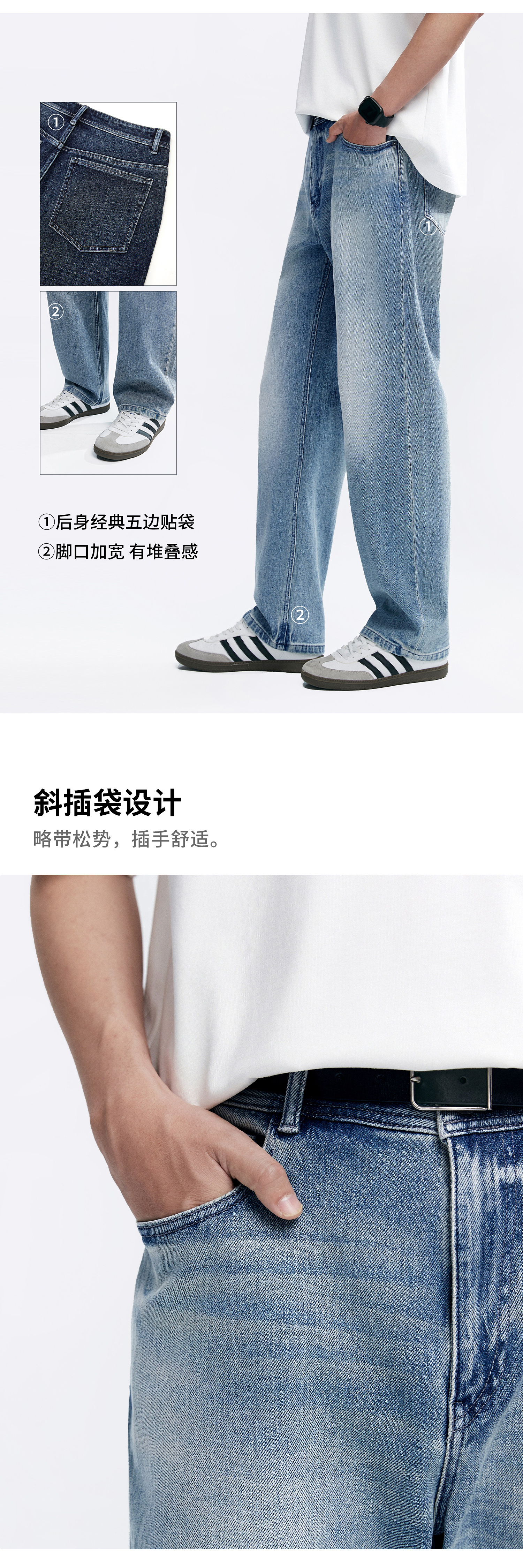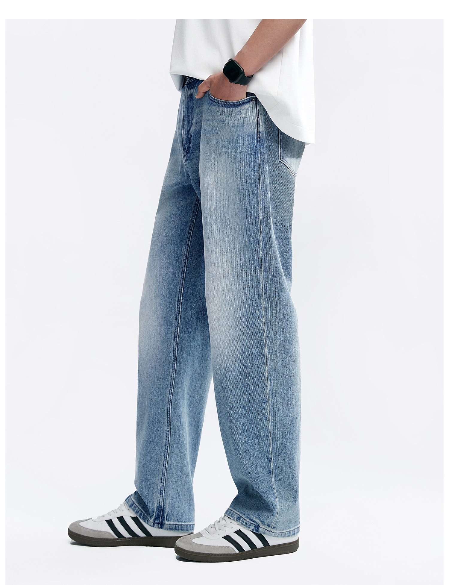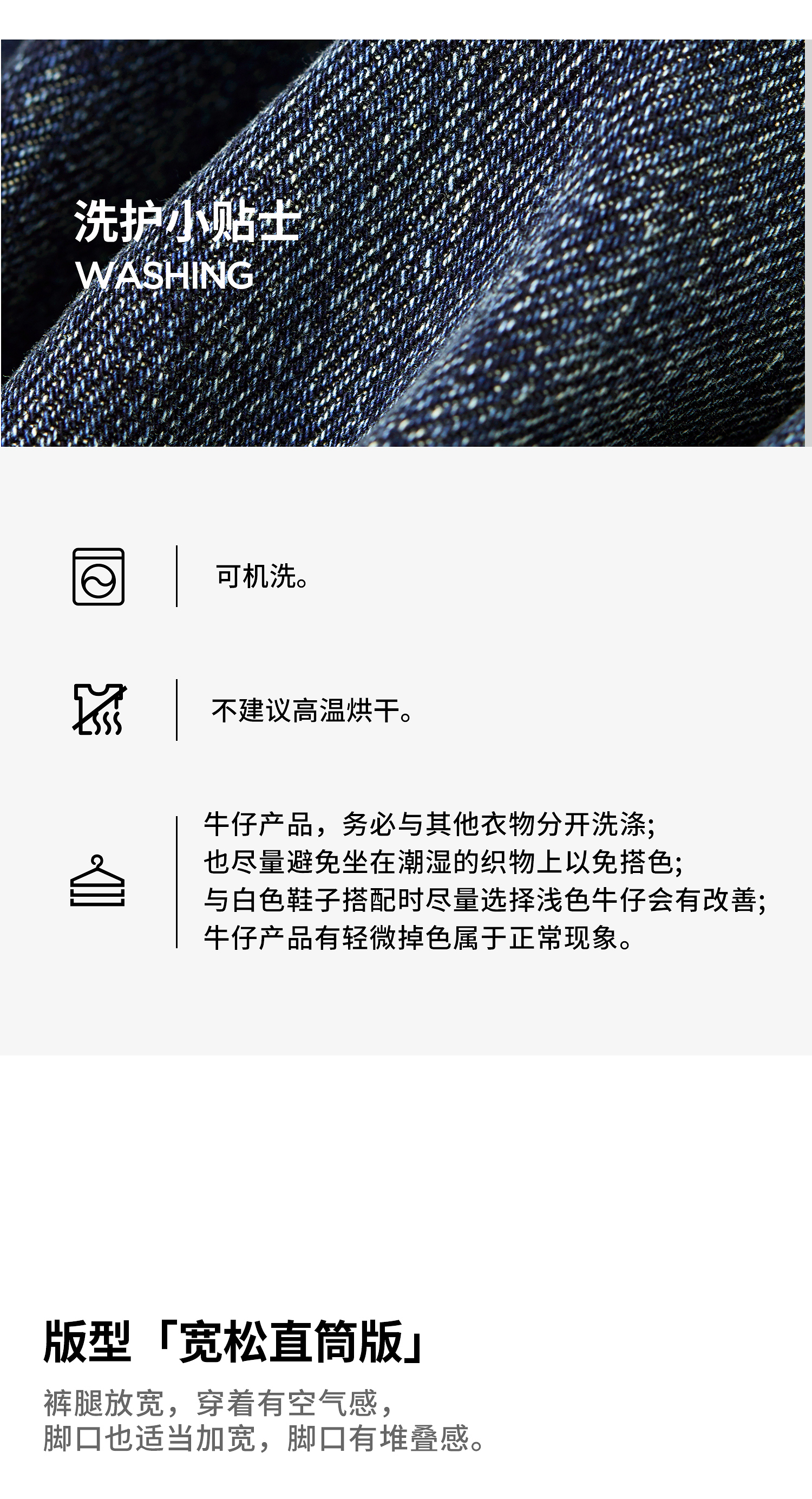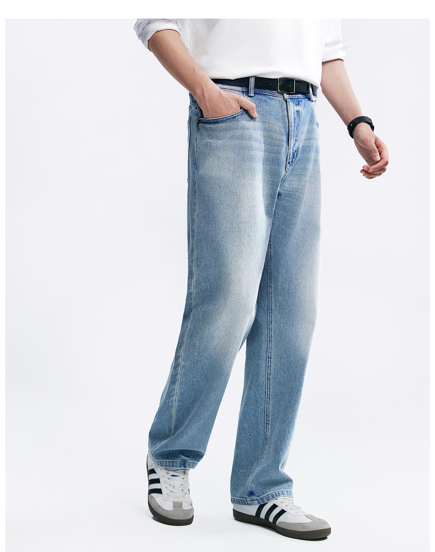 棉仓366819003-复古水洗莱卡宽松直筒牛仔裤