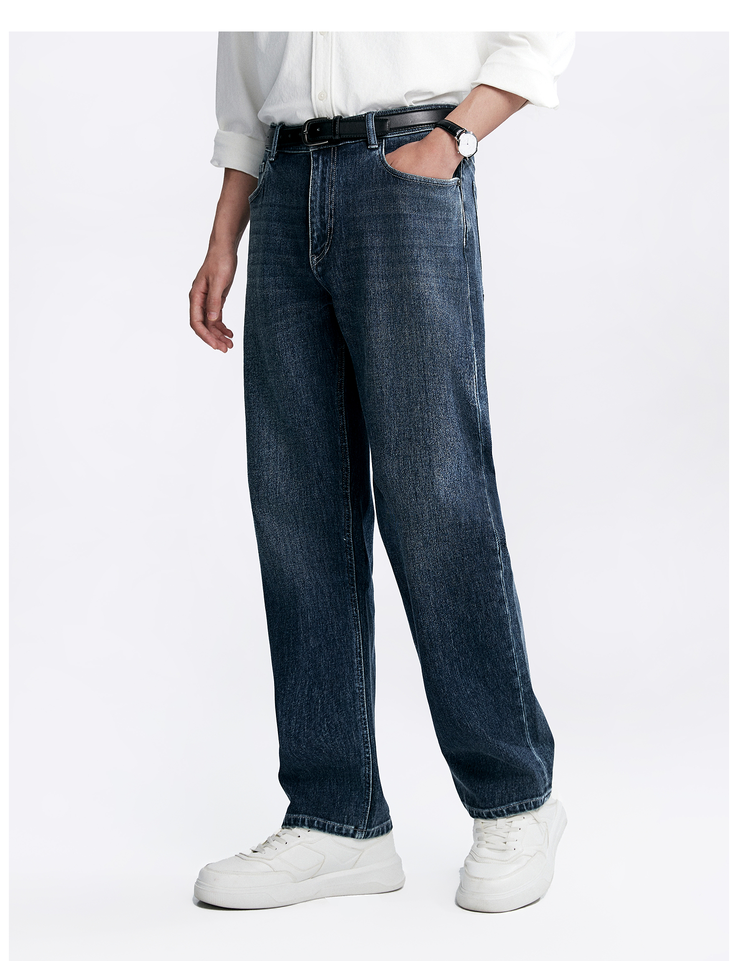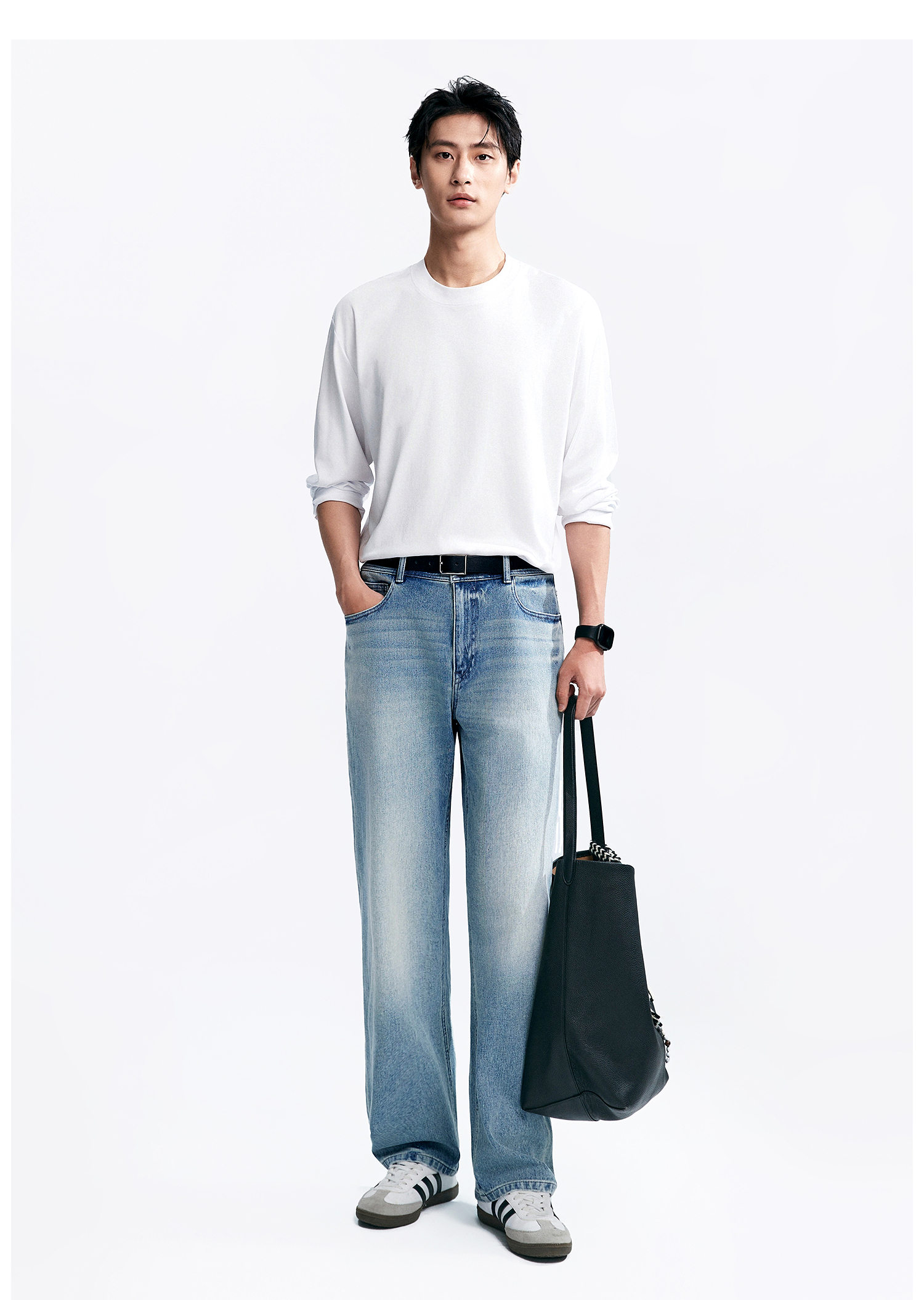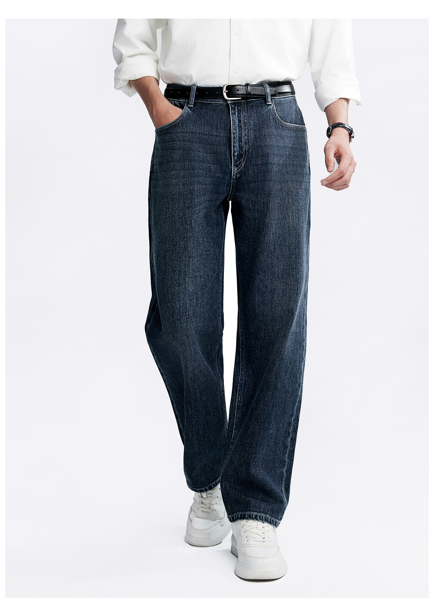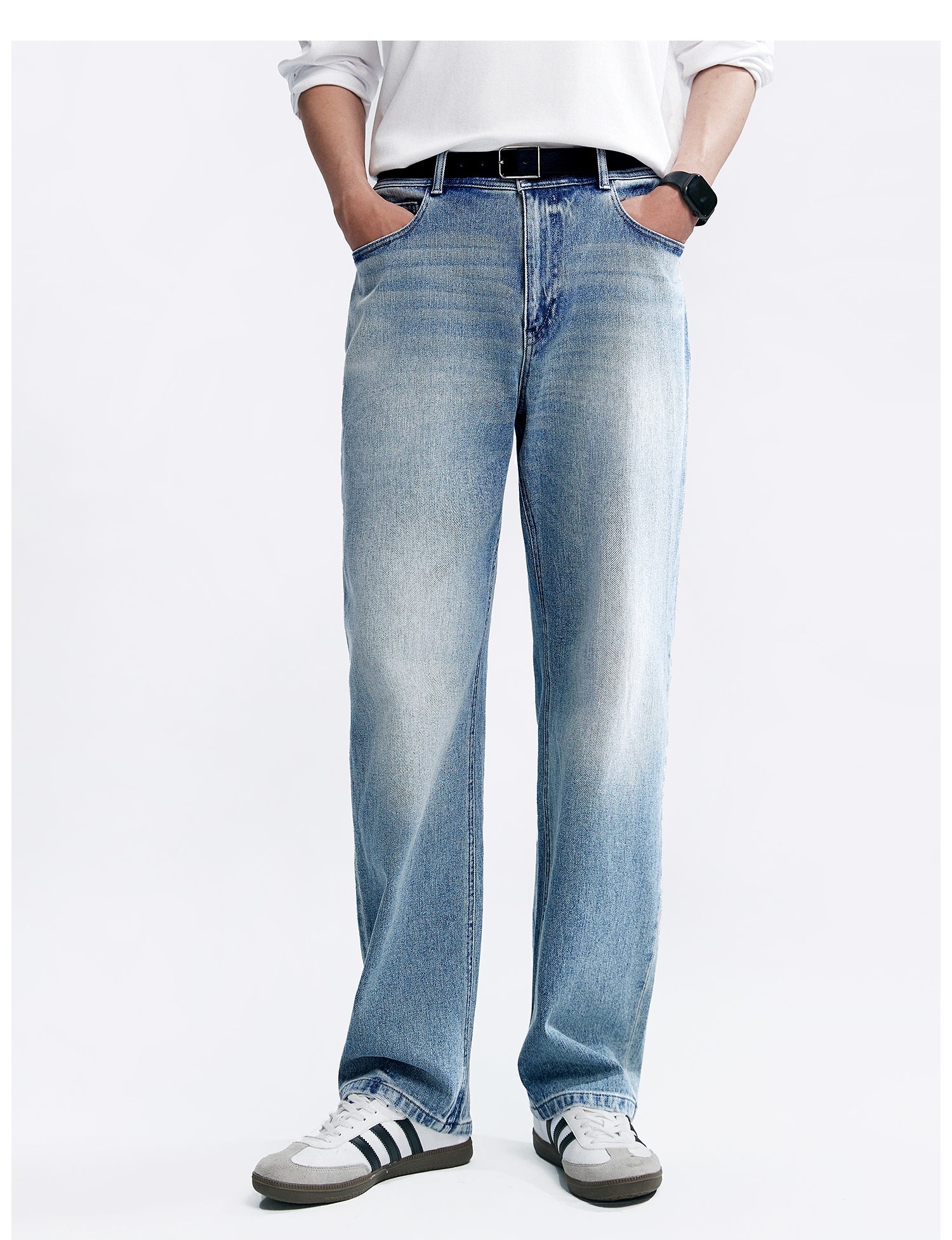 棉仓366819003-复古水洗莱卡宽松直筒牛仔裤
