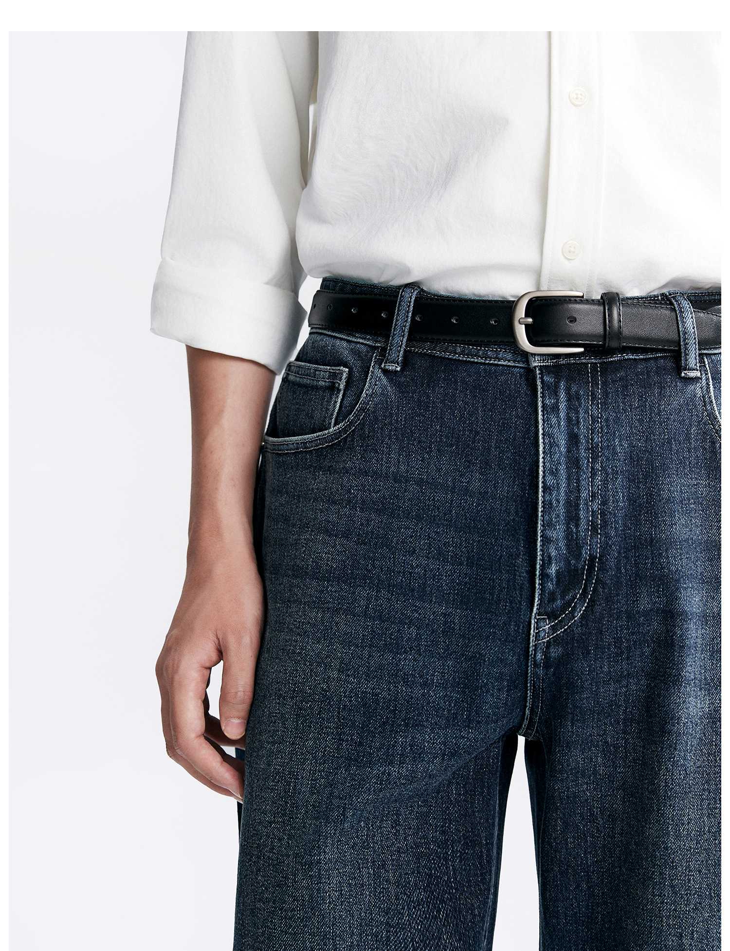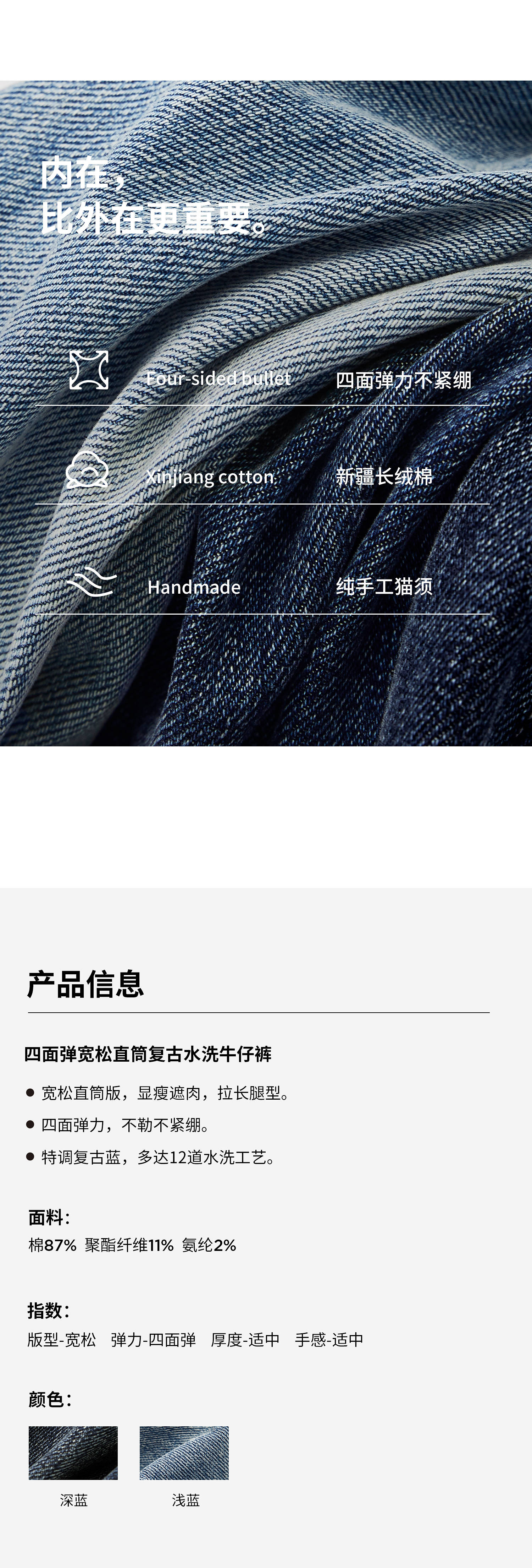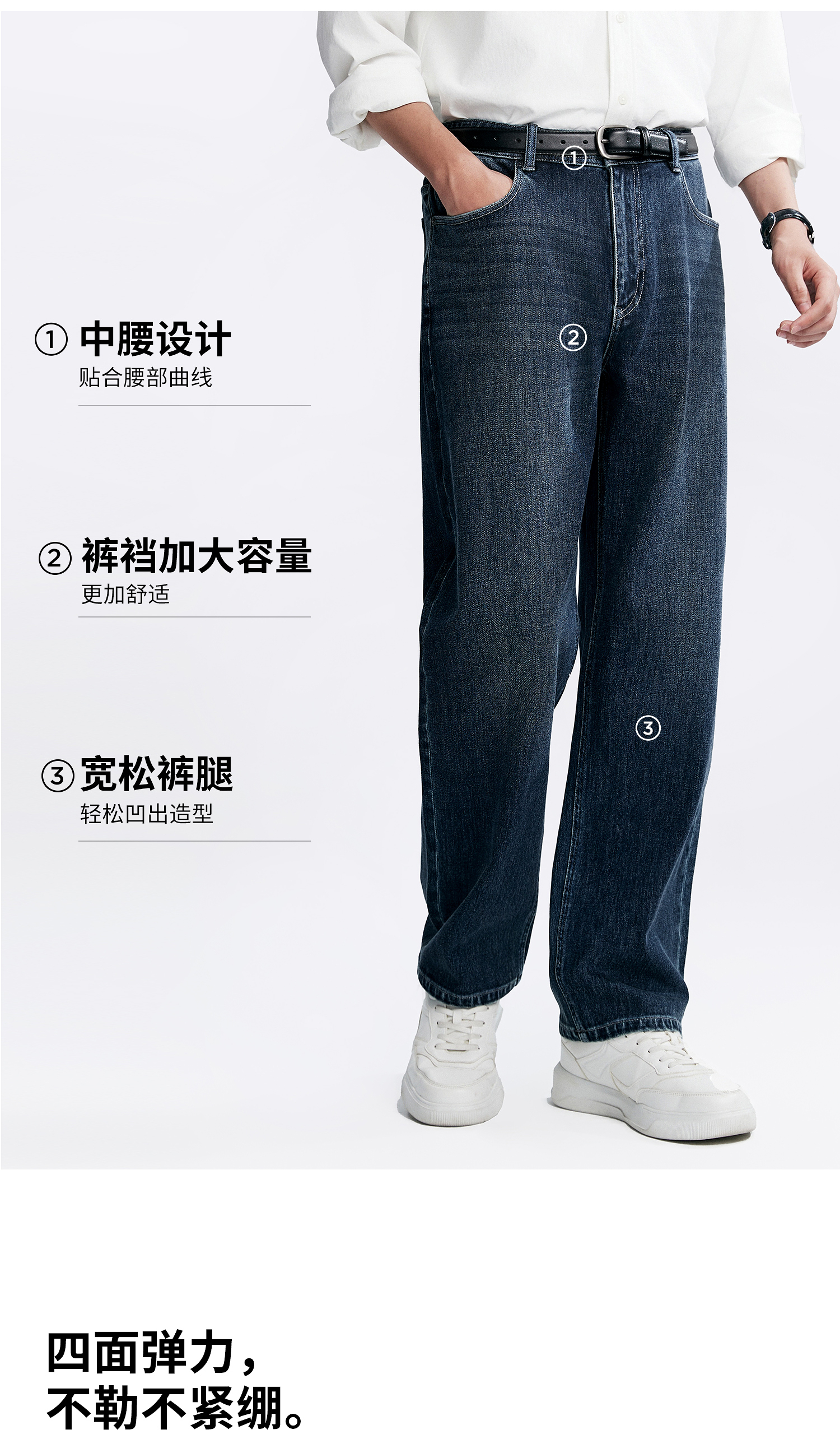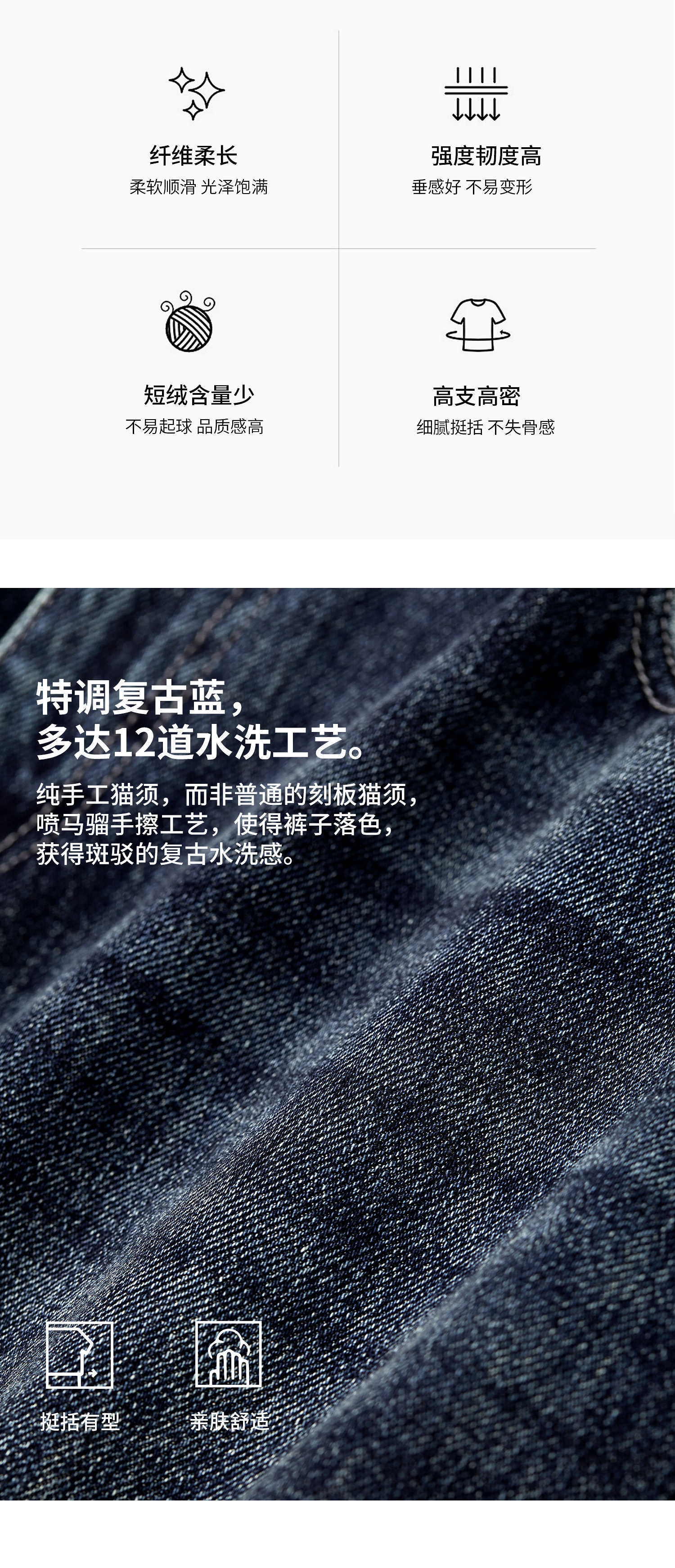 棉仓366819003-复古水洗莱卡宽松直筒牛仔裤