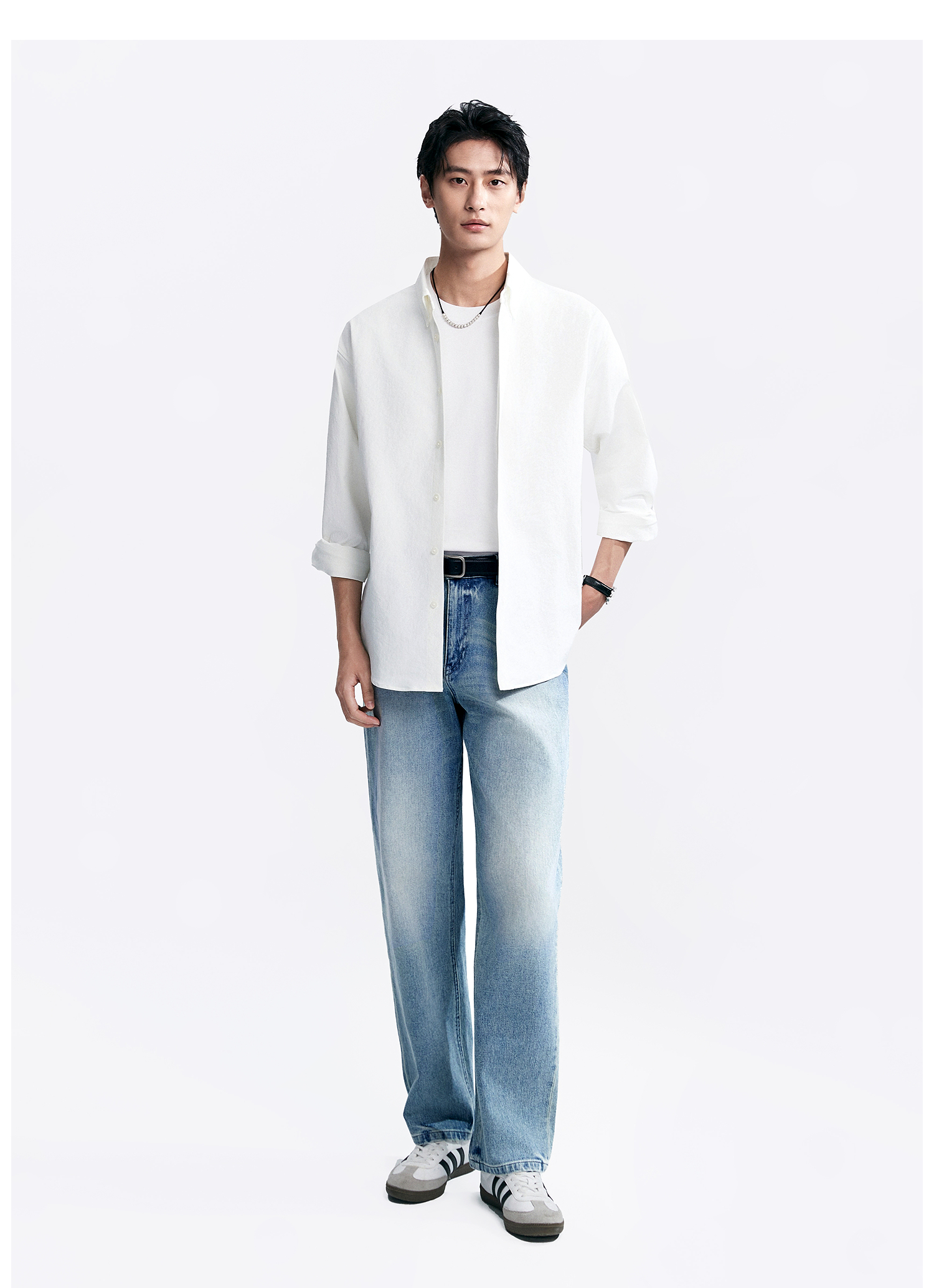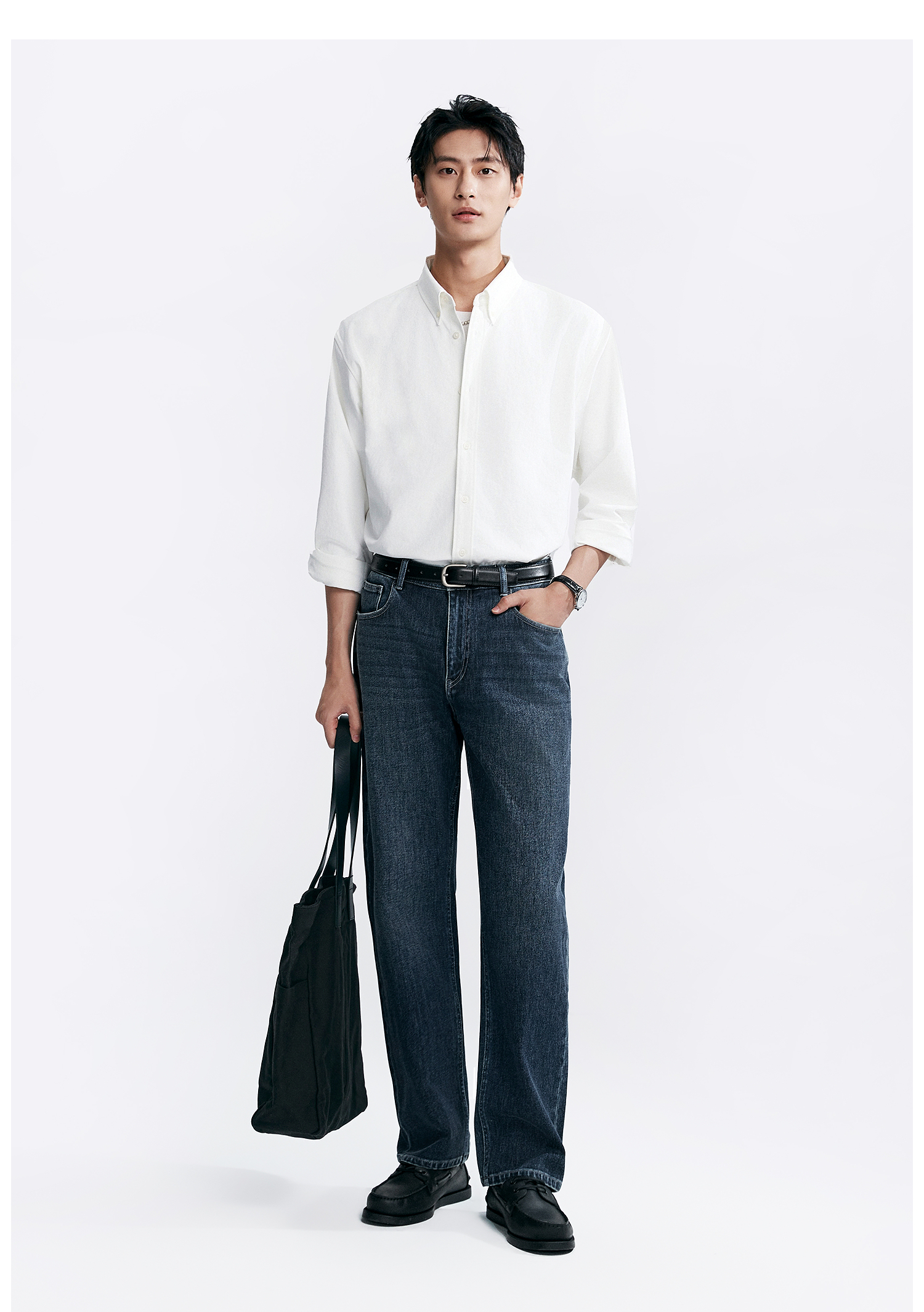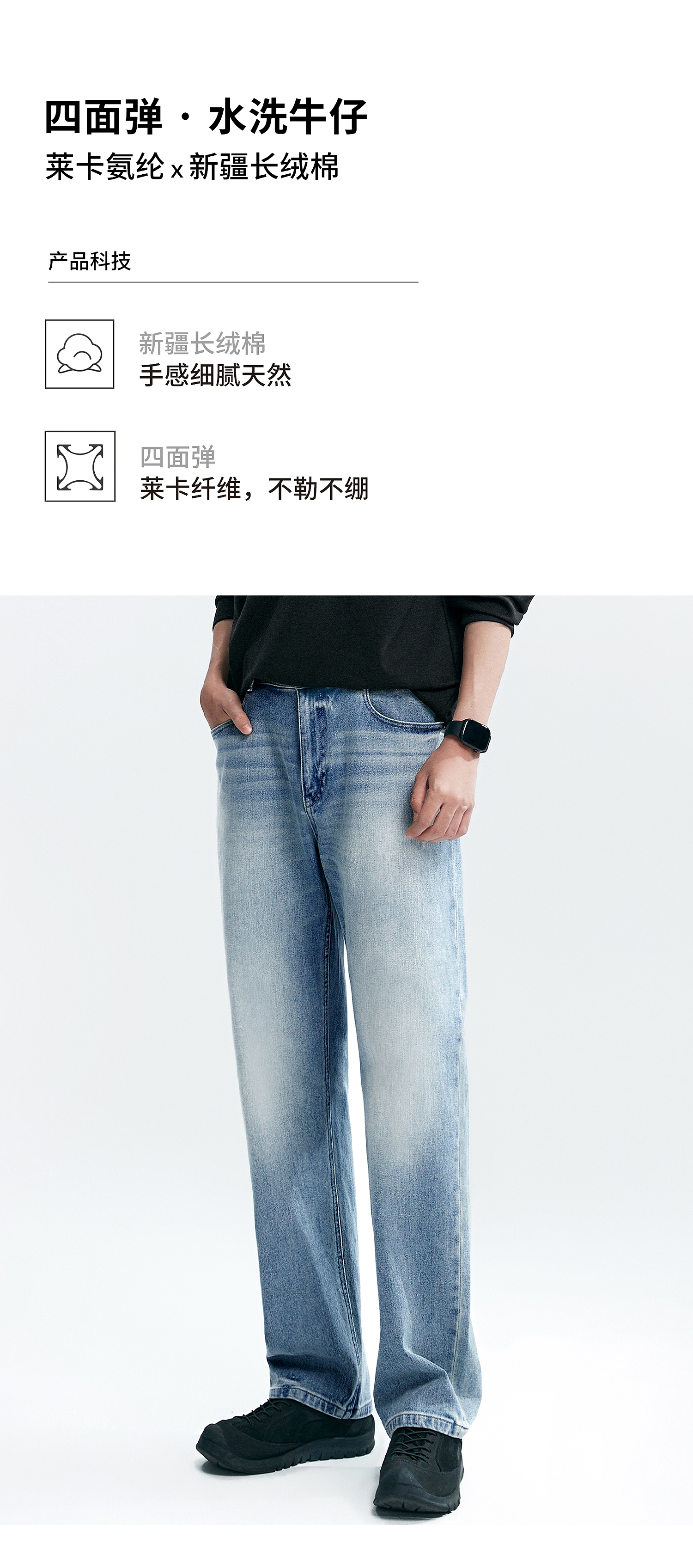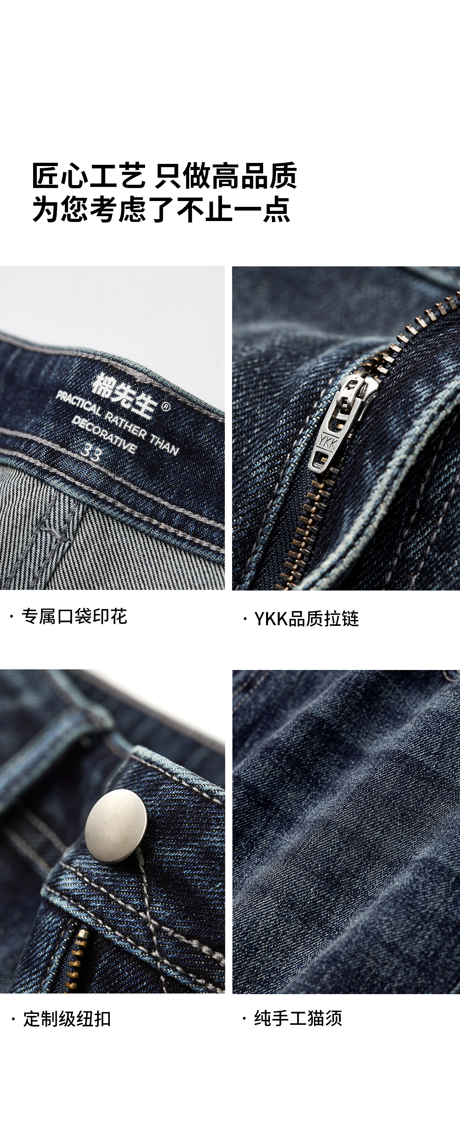 棉仓366819003-复古水洗莱卡宽松直筒牛仔裤