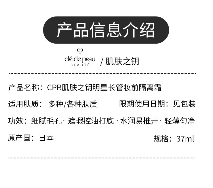 买1送1【保税仓美妆】 CPB肌肤之钥 黑长管隔离霜妆前37ML*2 请单拍-合并订单不发货 赣州保税仓直发