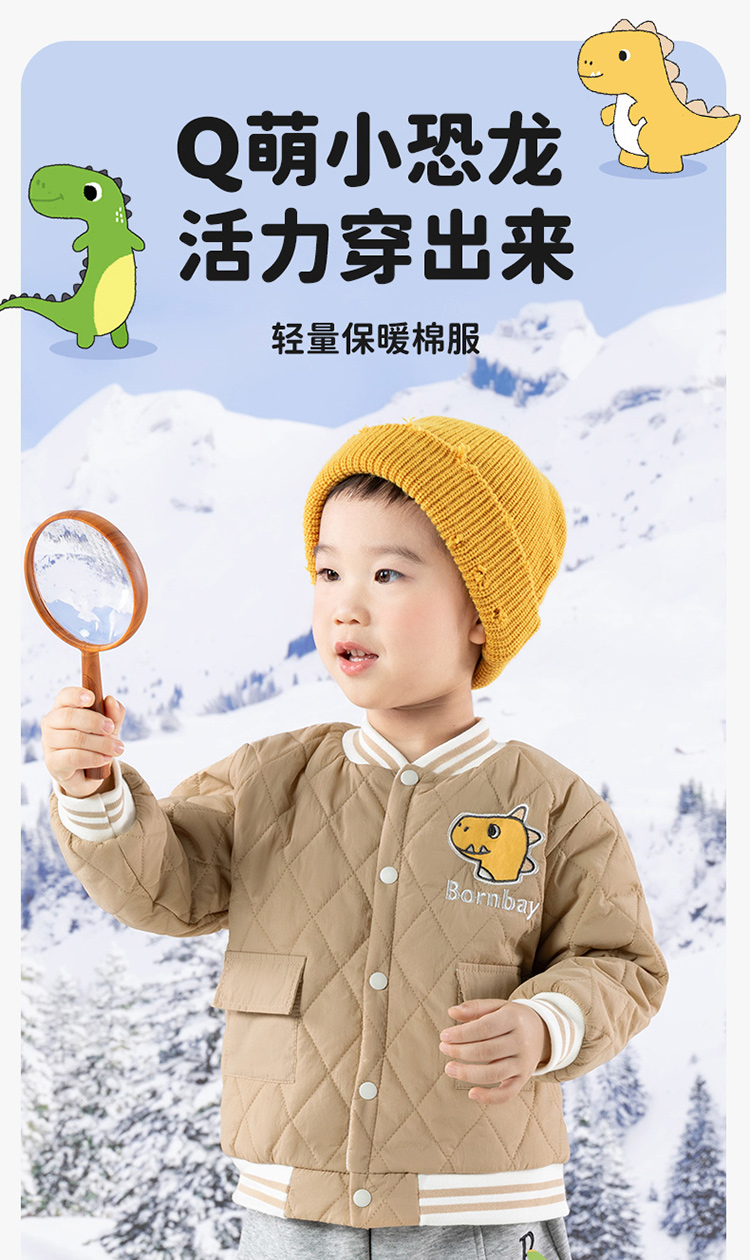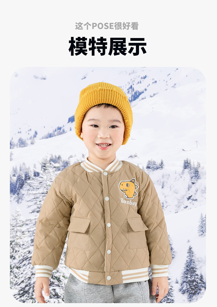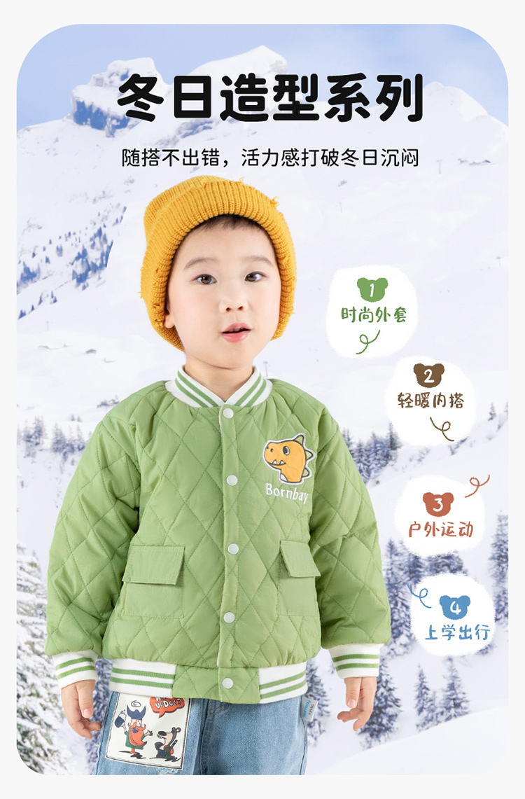 贝贝怡童装男童夹棉外套2024新款儿童加厚棒球服男孩秋冬洋气棉服ZB4DS026