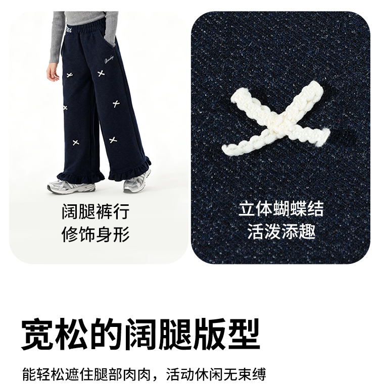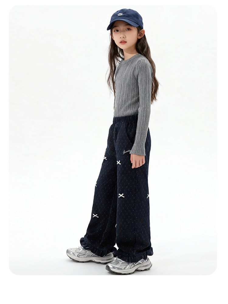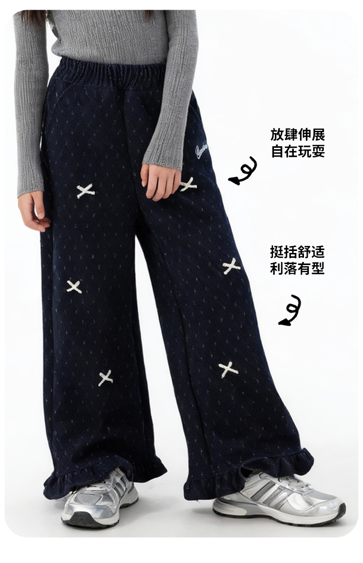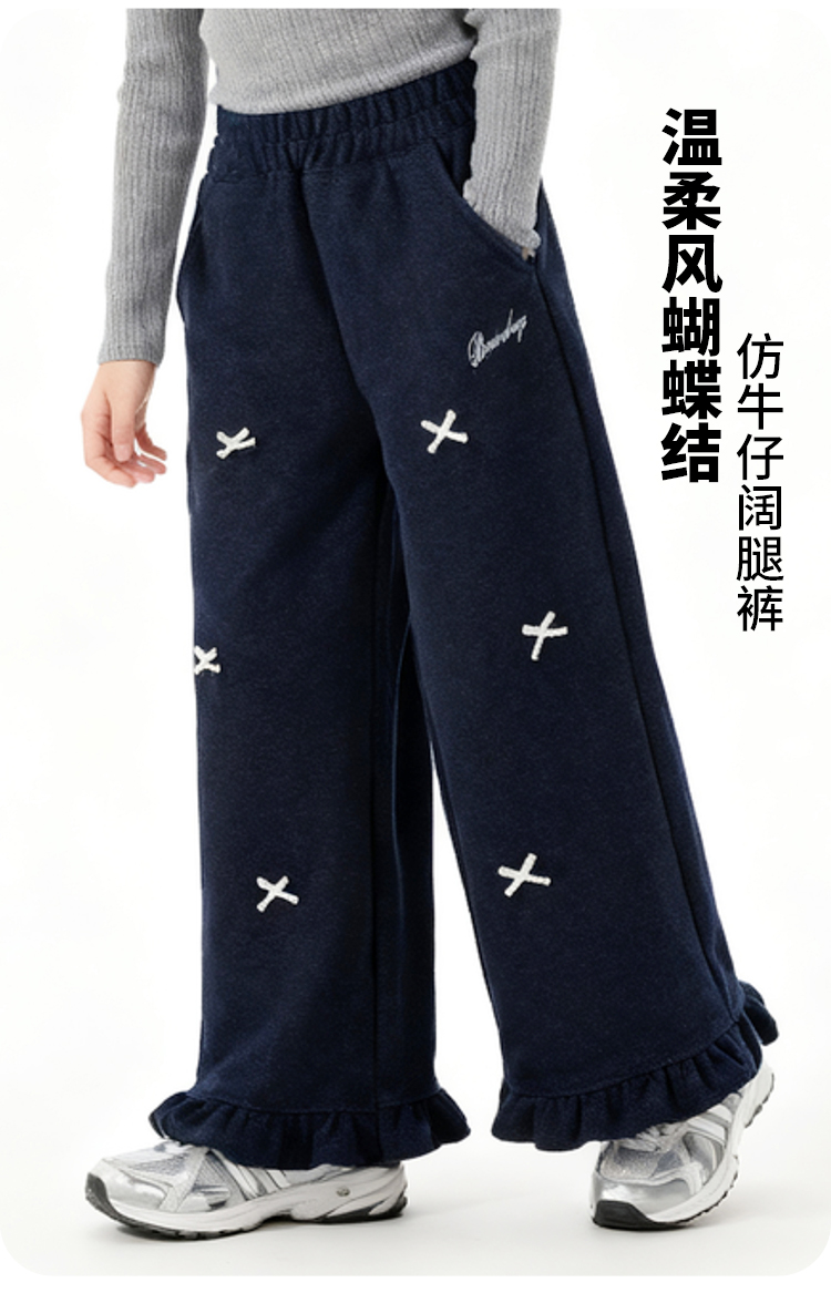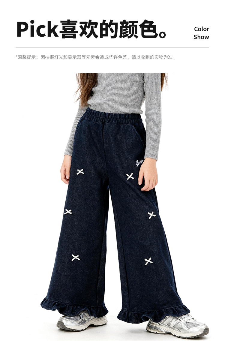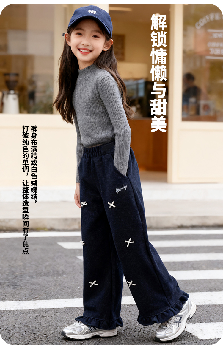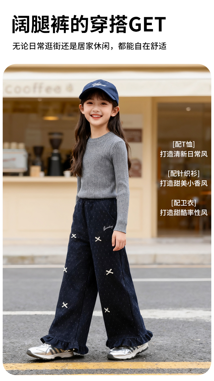 贝贝怡童装女童仿牛仔裤阔腿裤2025秋冬新款宽松女童休闲长裤子ZB3EK048