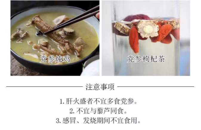 野生老党参,芯黄味浓。横纹明显、狮子头大、表皮粗糙是野生党参的标志,且芯更黄,党参味道更加自然浓郁。