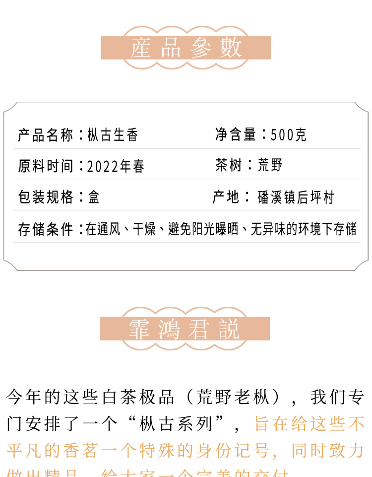 2022年春福鼎白茶荒野老枞典藏级牡丹散茶 特级花香日晒枞古生香500g