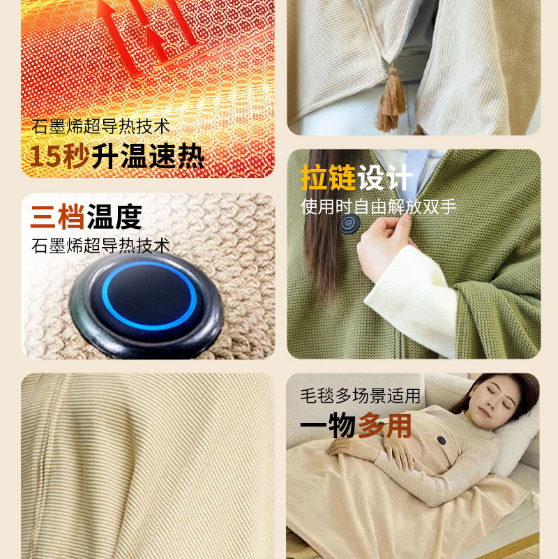 倍集 云裳披毯加热披肩 15秒速热 智能控温 3档可调 披肩设计 可水洗 标准款/升级款