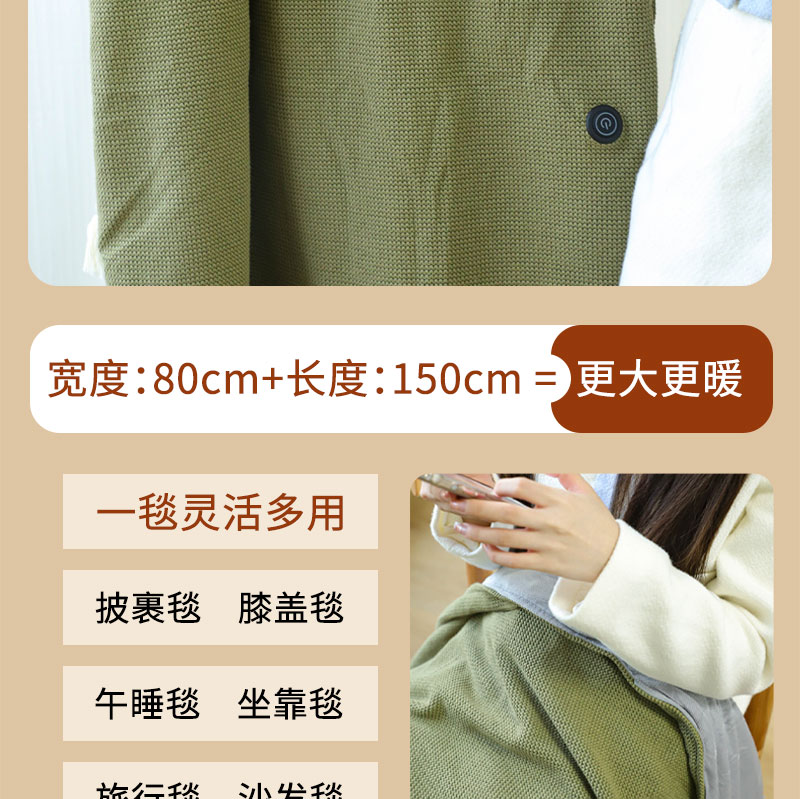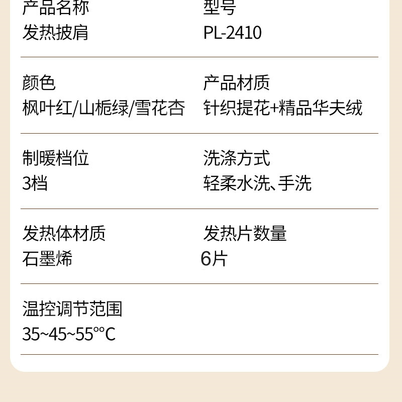 【品名】倍集 云裳披毯加热披肩 15秒速热 智能控温 3档可调 披肩设计 可水洗 标准款/升级款 【规格】 云裳披毯(标准款) 云裳披毯(标准款+10000mAh充电宝) 云裳披毯(升级款) 云裳披毯(升级款+10000mAh充电宝) 【产地】国内 【发货包装】独立包装 【发货地】福建 【发货快递】邮政、申通随机发 【补邮费地区】新疆、西藏+18元 内蒙古、宁夏、甘肃、青海+10元 【发货时效】48-72小时,周末节假日顺延 【产品说明】标准款材质为涤纶,发货无礼盒无礼袋;升级款材质为75%棉、礼盒礼袋发货。 |