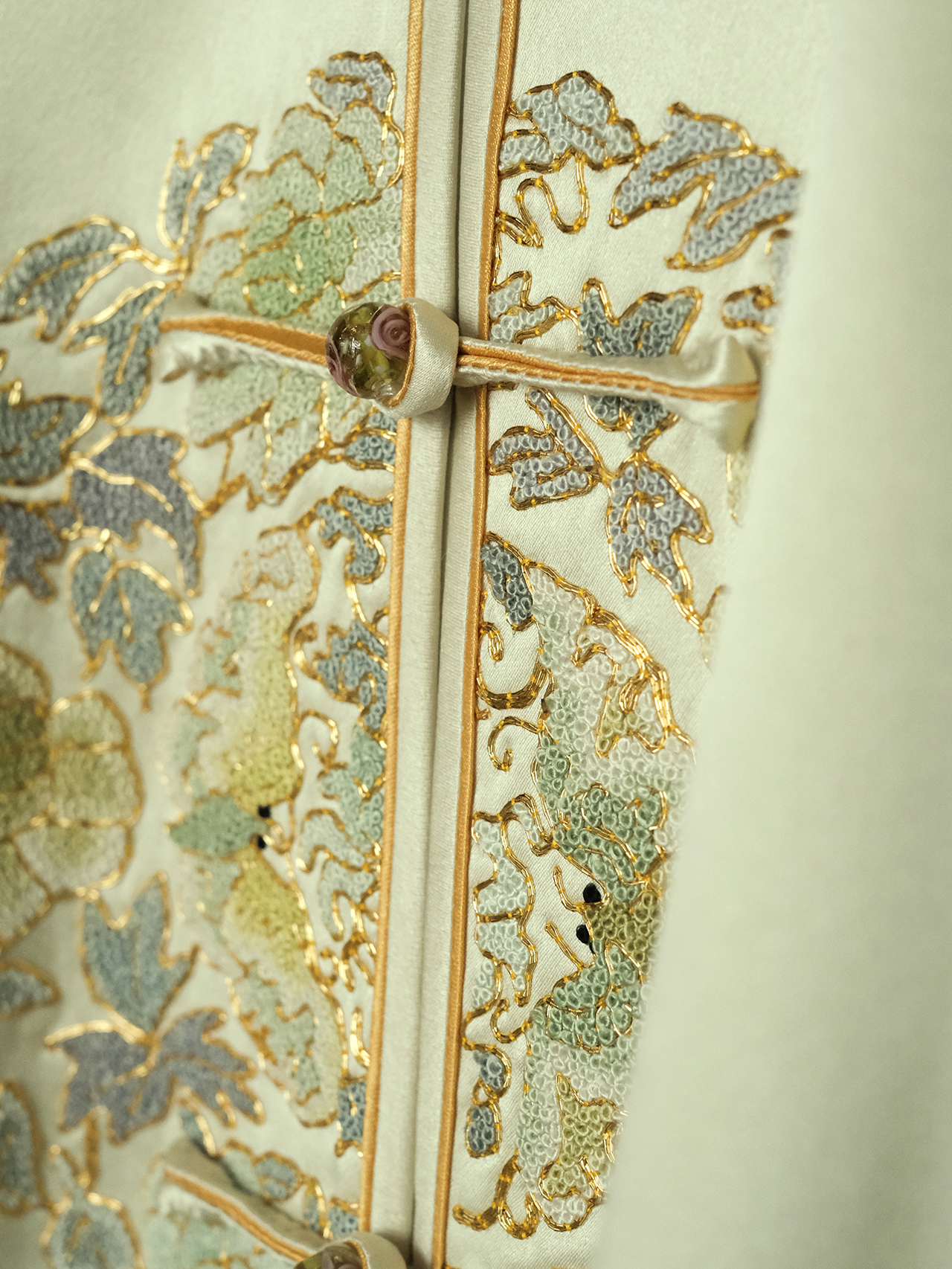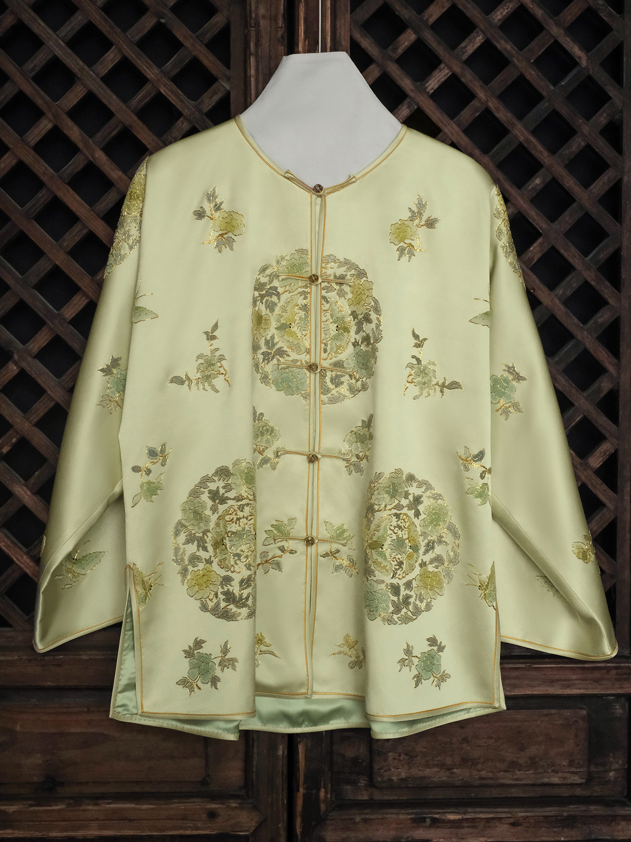 盛唐牡丹大师系列| 重工盘金团花外套-黄绿