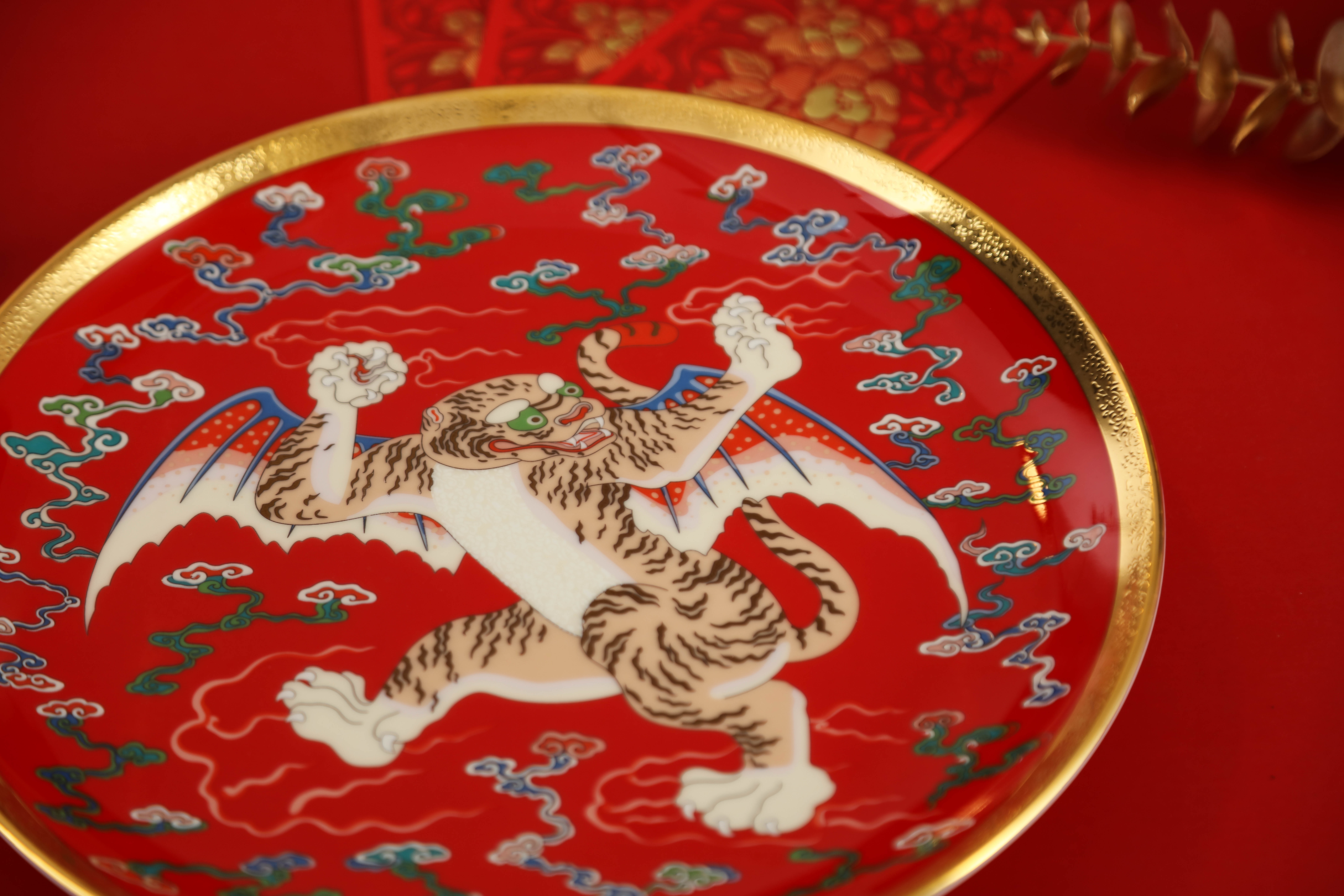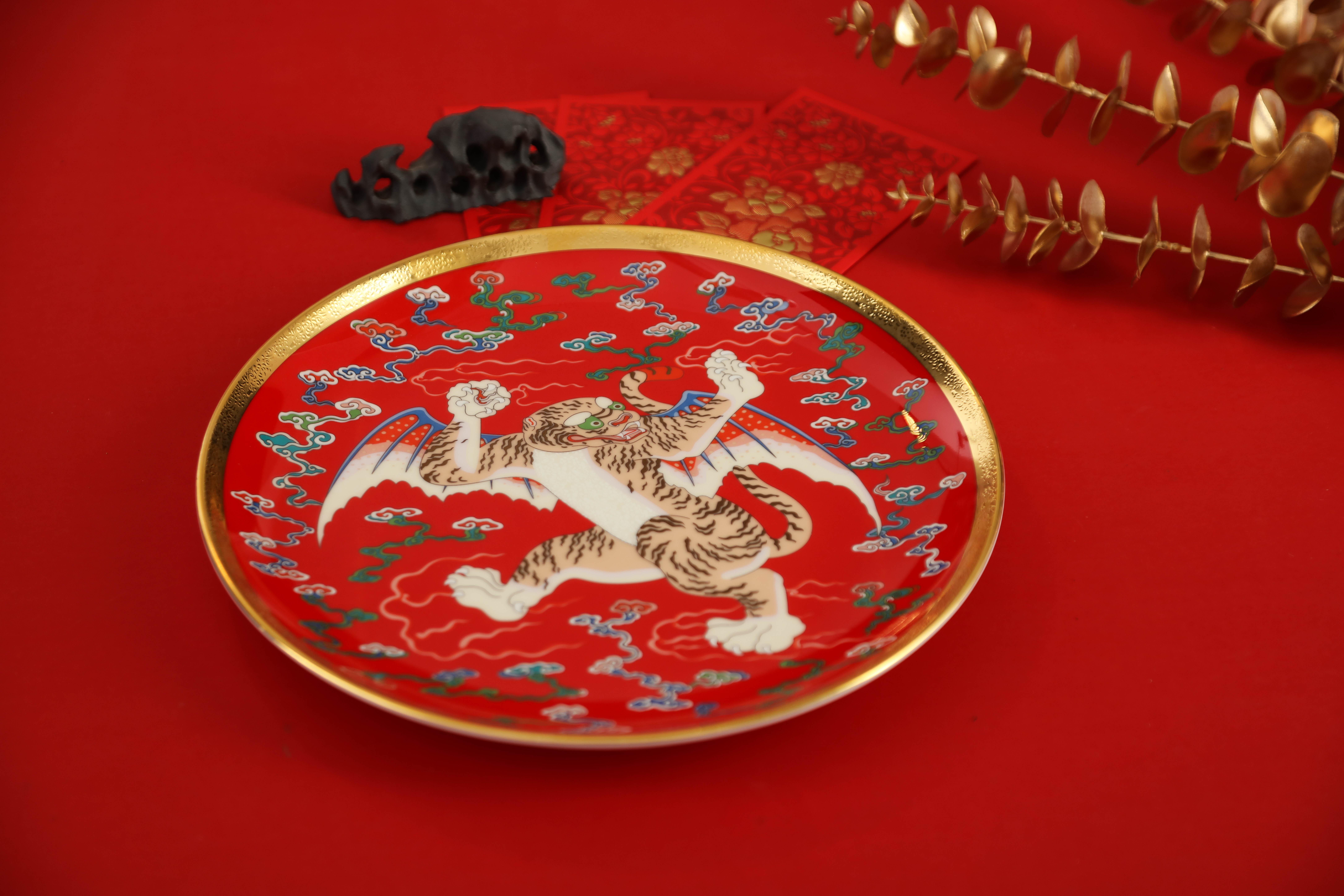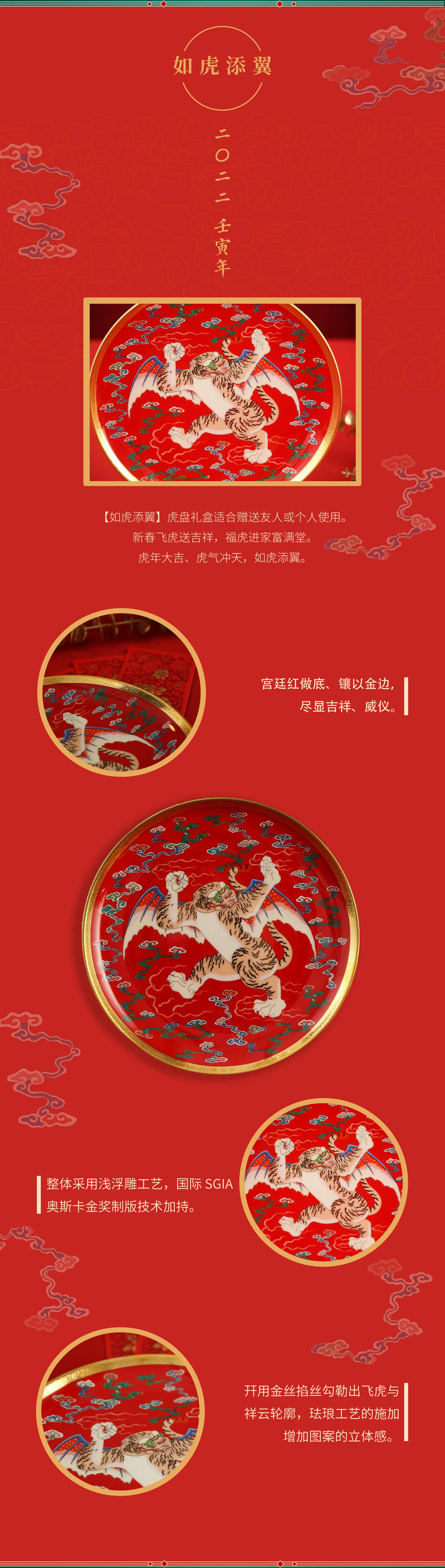 宫里的世界&南山匠人 老虎盘摆件 装饰盘 金丝掐丝 珐琅工艺