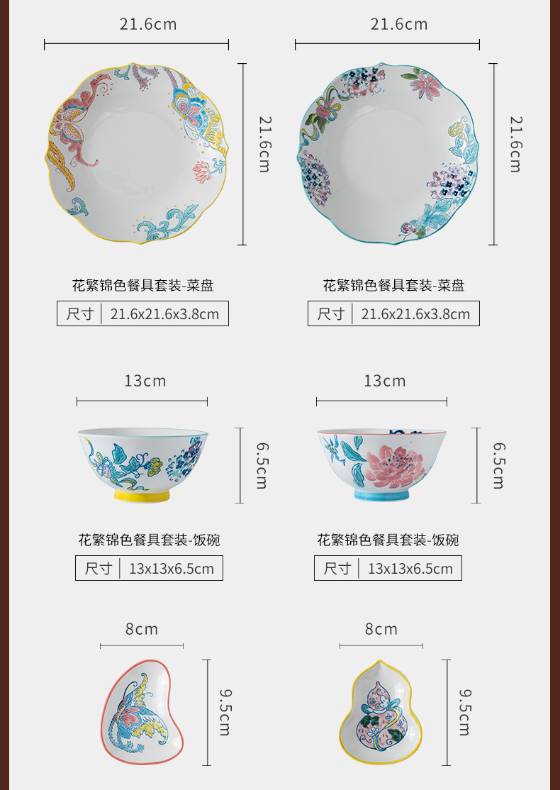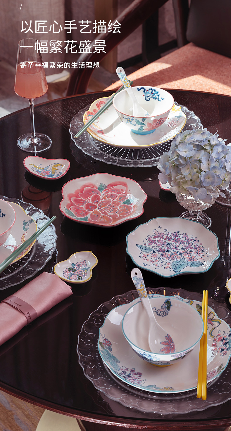 【宫里餐具】 花繁锦色 陶瓷餐具套装 2人套装/4人套装
